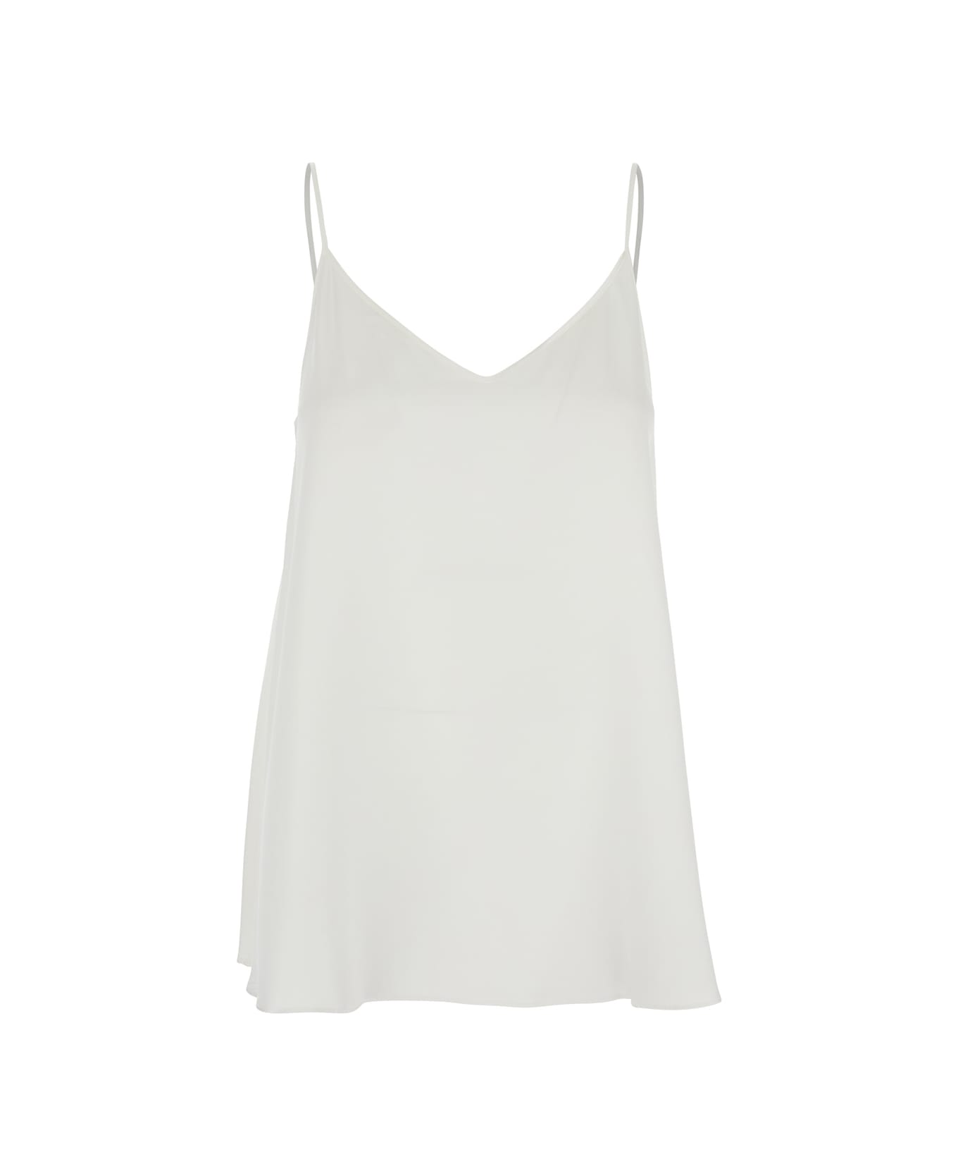 'abe' White Sleeveless Top With Spaghetti Straps And V Neck In Silk Stretch Woman