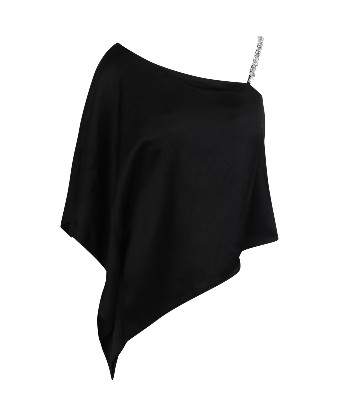 'Riko' one shoulder top, single short sleeve, asymmetrical design, Black color, shoulder strap decorated with crystals, by Alice+Olivia