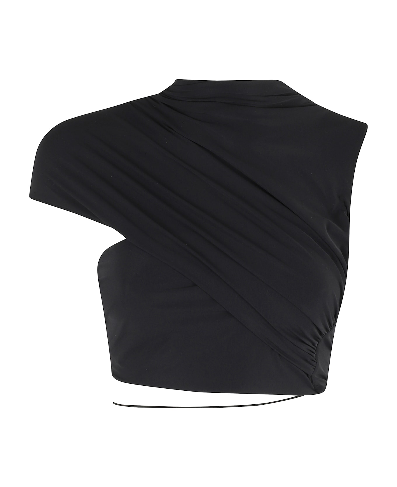 Alin top - Amazuin - Black color - Stretch jersey fabric - High collar - Asymmetrical drape - Elasticated waistband - Tight fit