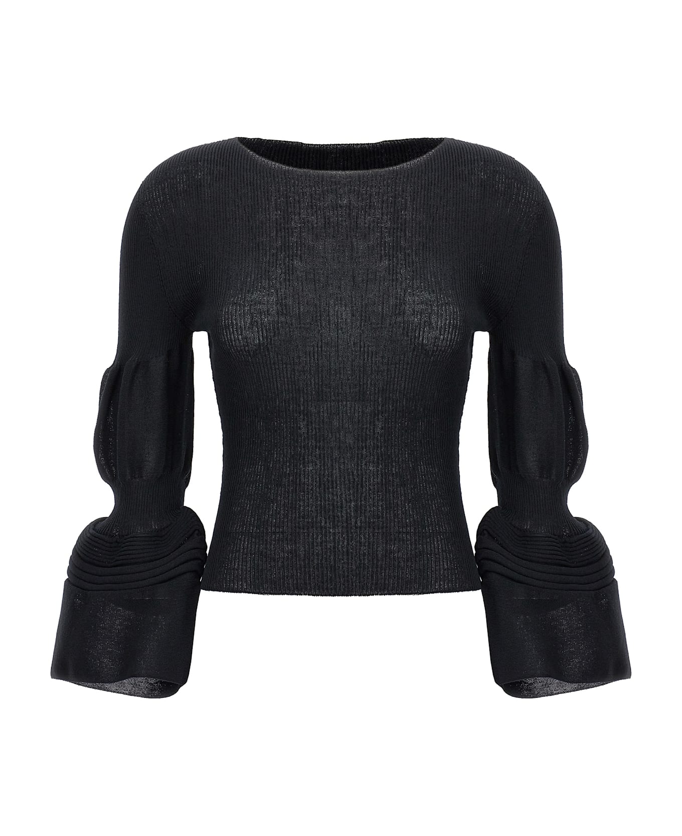 'Assemblage branch' ramie blend knit top with long puff sleeves. Round neck.