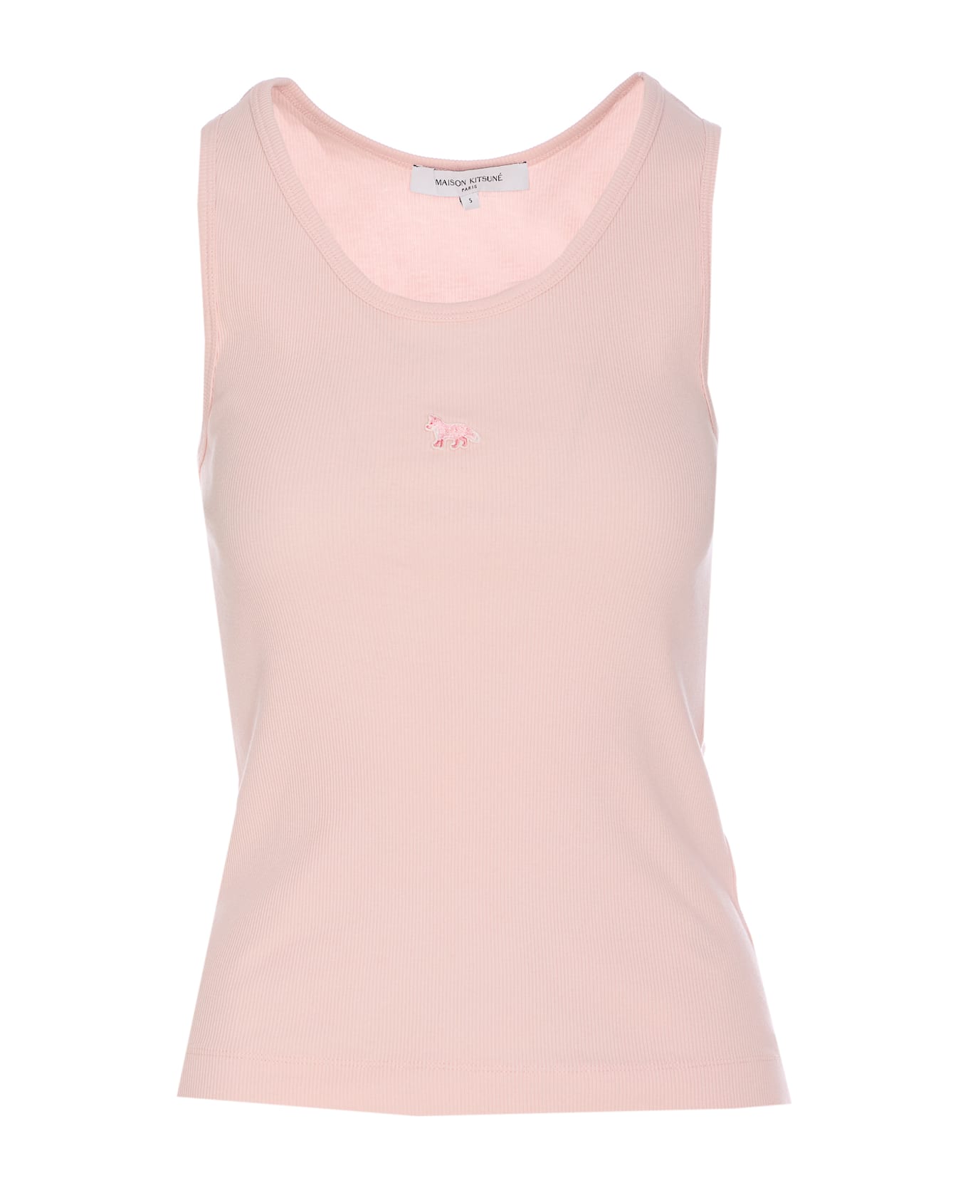 Maison Kitsune' pink Baby Fox patch top, crewneck, sleeveless, frontal patch logo