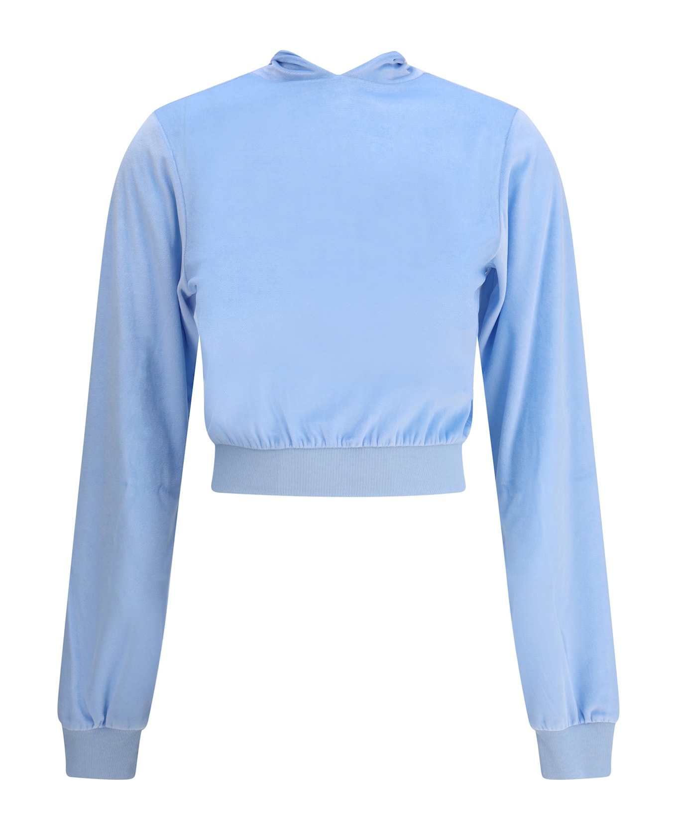 Balenciaga's back to front top reinterprets the rules of design with a bold and sophisticated inverted construction. made of bistretch velvet, it features sloping shoulders and a silhouette that plays with volumes. the back, the star of the look, is embellished with a zipper, a knotted collar and a pouch pocket, while gathered cuffs and waist add movement and structure. a striking garment designed for those who like to stand out.