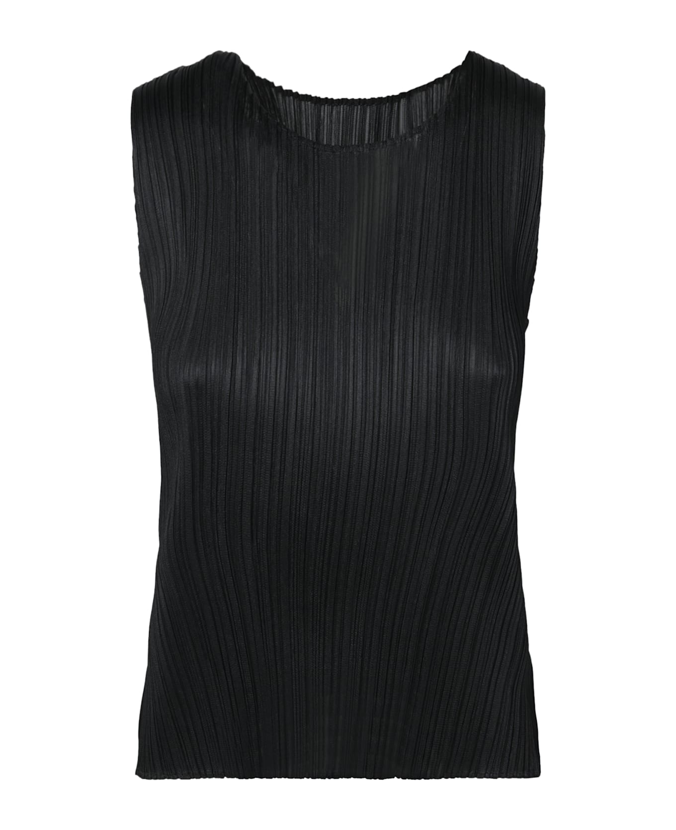 A knitwear innovation from Issey Miyake, this black tank top features a distinctive pleated fabric that enhances the silhouette while ensuring comfort.