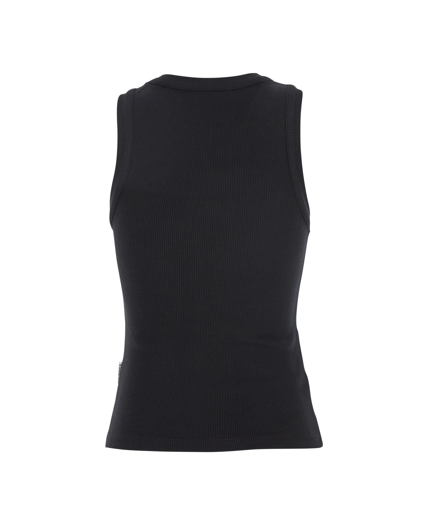 Black Sleeveless Top With Round Neck And Front Crystal Embellishments In Cotton Stretch Woman