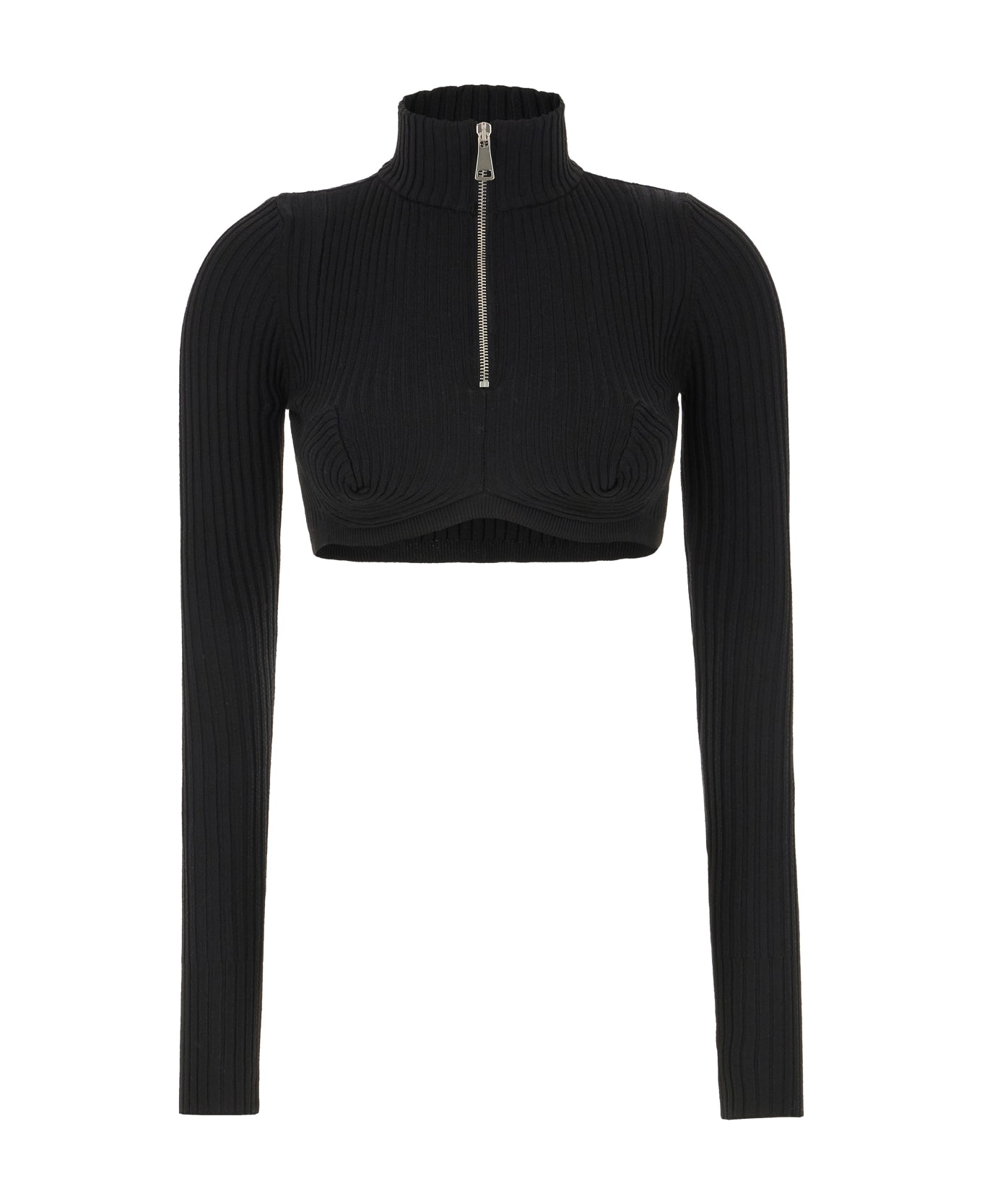 Short-cut top realized in ribbed stretch viscose blend. -Funnel neck -Partial zip closure
