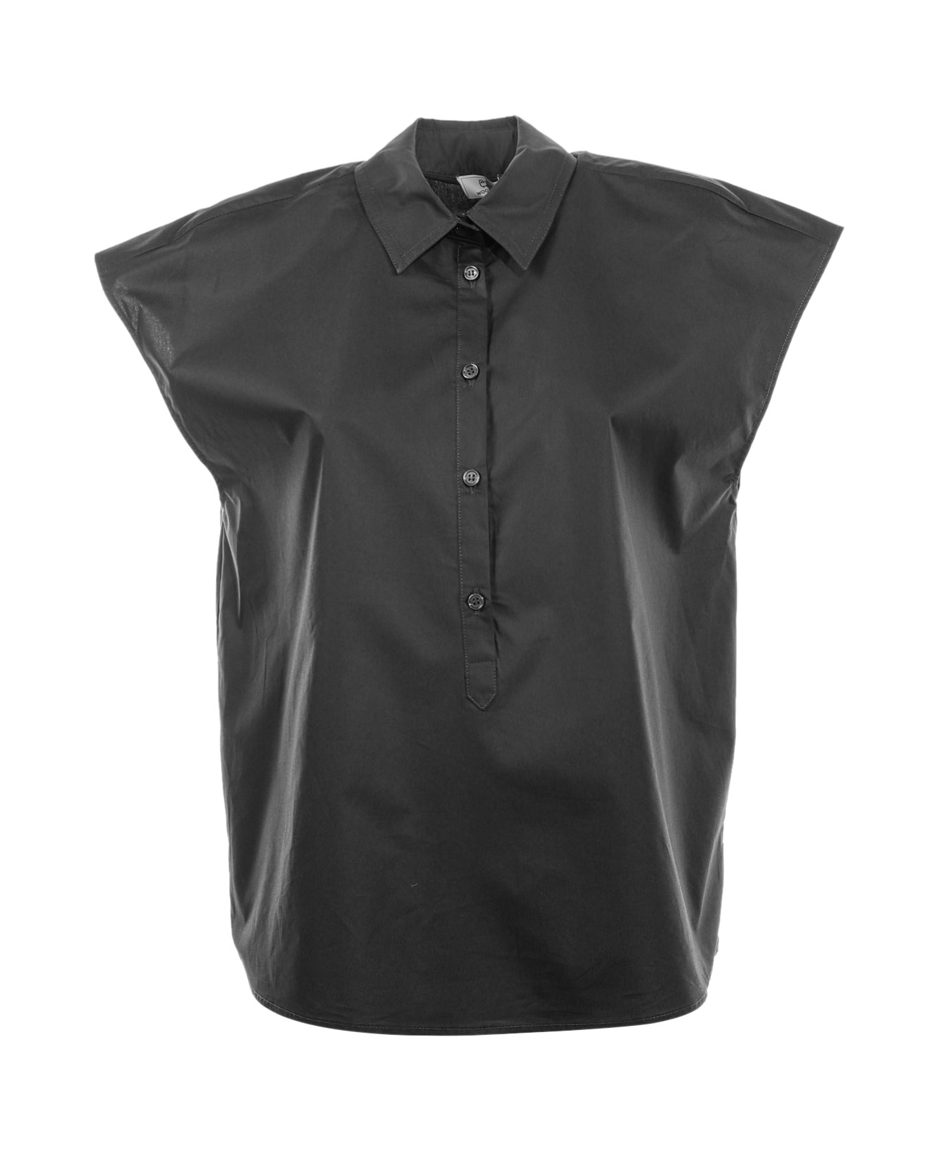 Black Short-sleeved Blouse In Cotton