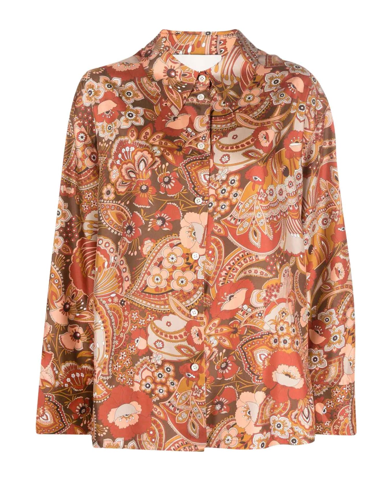 Brown shirt Róhe. Paisley print, classic collar, front closure with buttons, long sleeves and straight hem. 100% silk