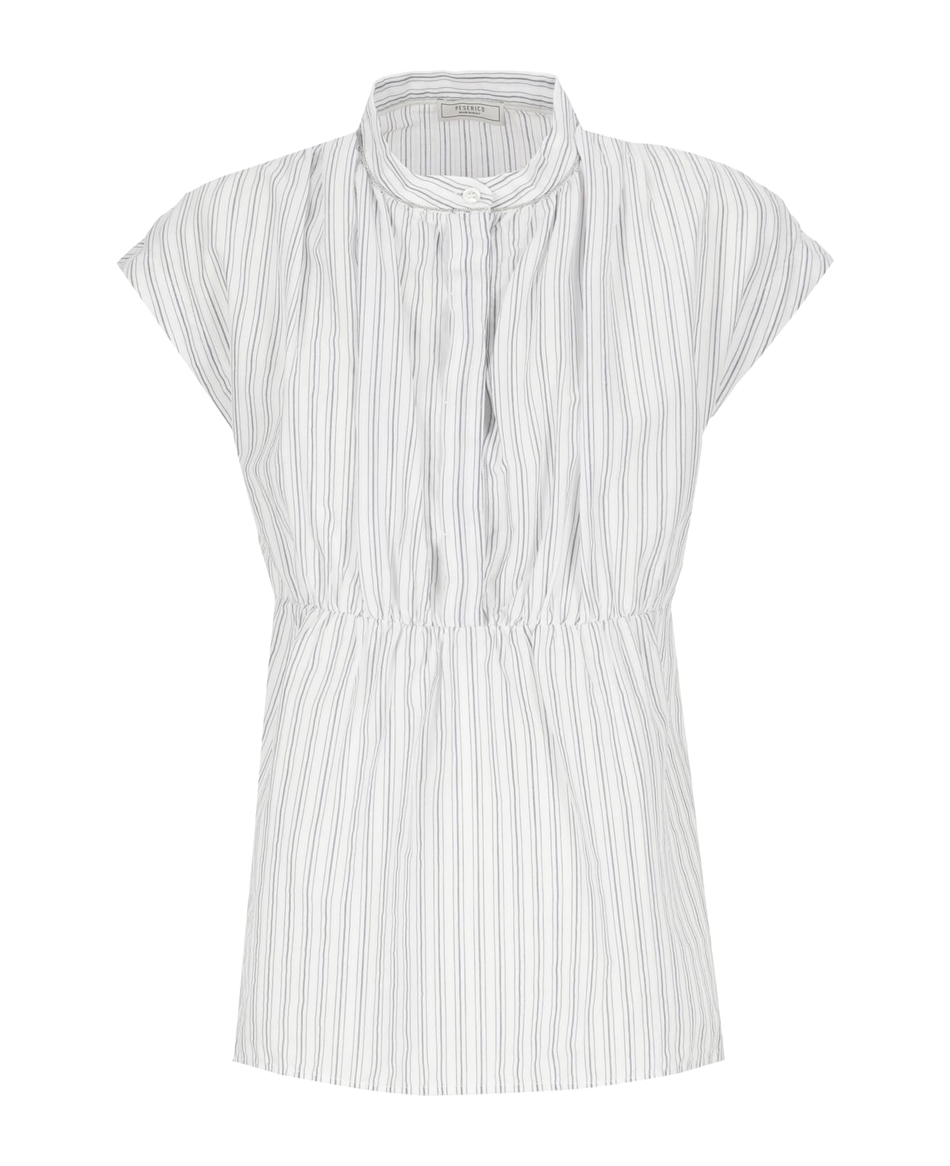 - White Peserico cotton blouse for woman - Crewneck with Bright Light Point details - Sleeveless - Front buttons fastening - All-over contrasting color striped pattern Composition: 100% Cotton