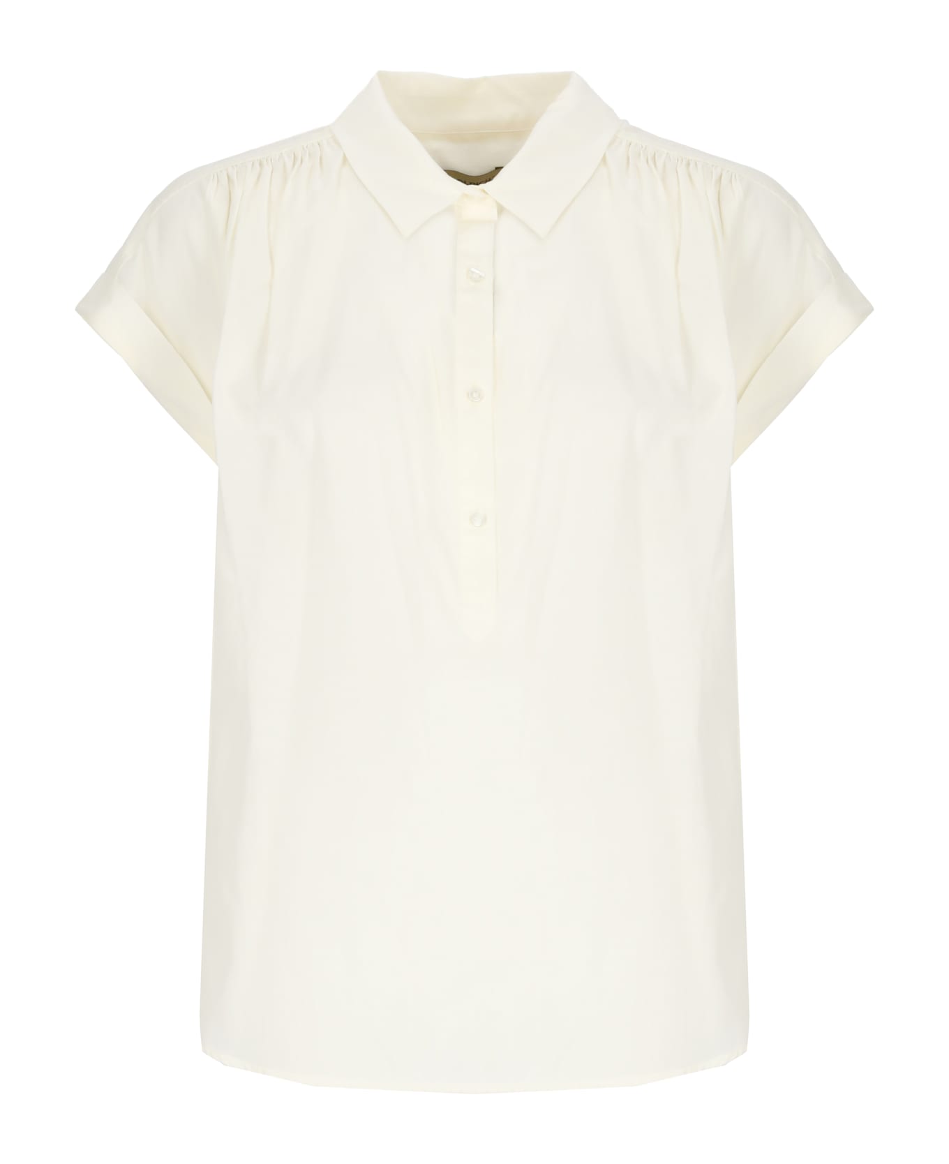 - Ivory Woolrich cotton blouse for man - Collar - Short sleeves - Front buttons fastening