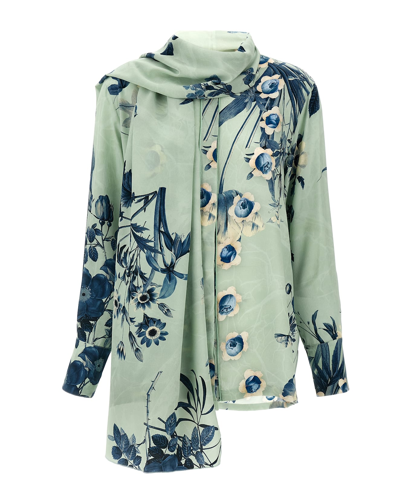 'Egle' printed silk shirt with sash tie at the removable neck, long cuffed sleeves, button closure.