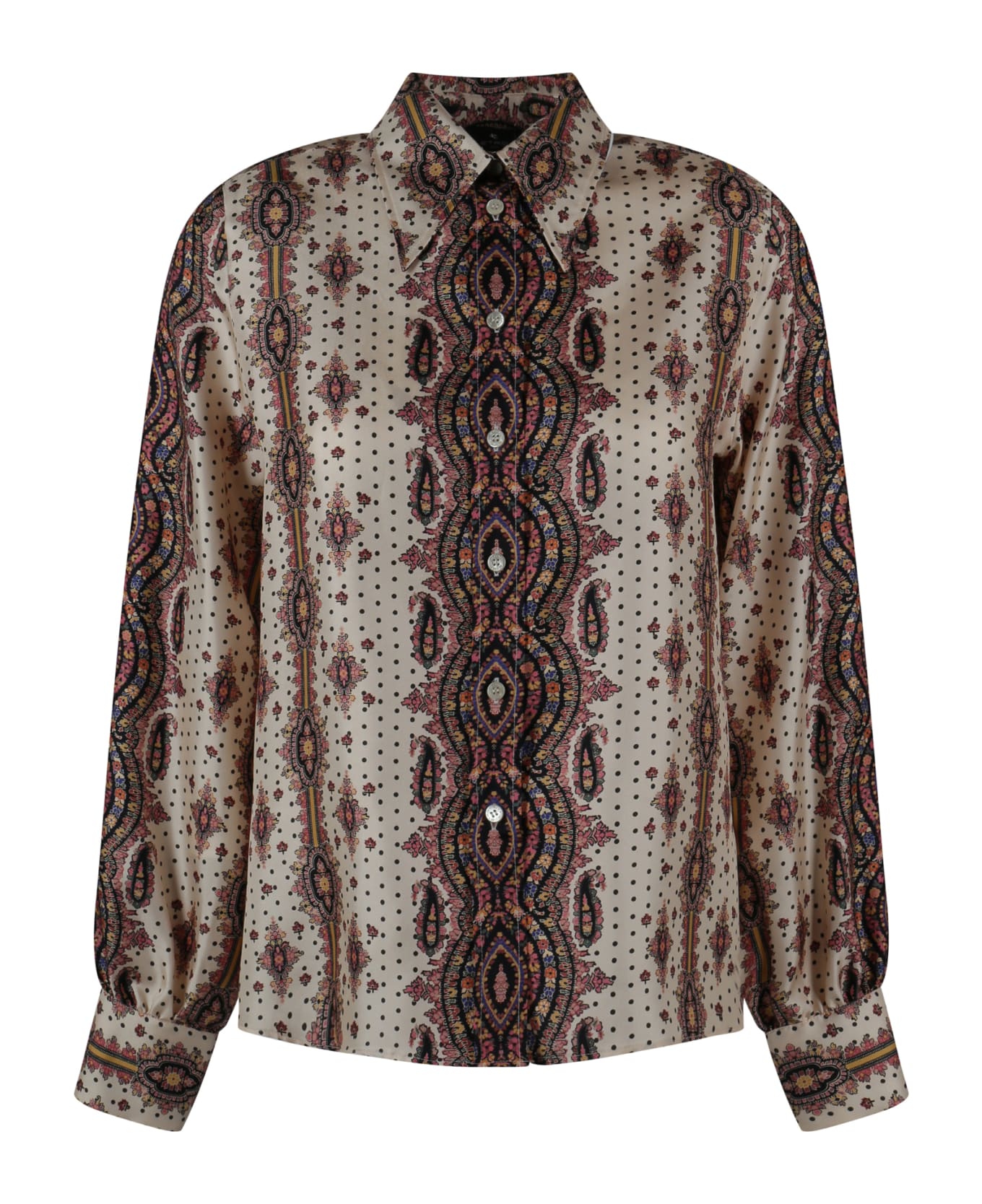 Silk shirt by etro, classic collar, front button closure, multicolored geometric pattern, adjustable button cuffs, regular fit. Composition: 100% % Silk