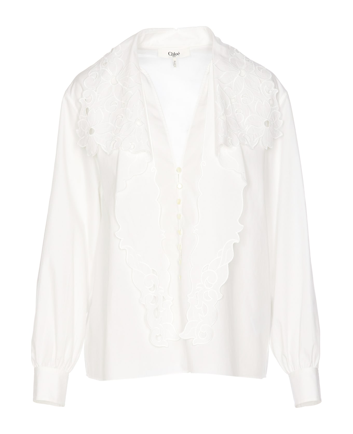 Chloe' white shirt, buttons closure, embroidered detail on collar, long sleeves, button on cuffs Composition: 100% Cotton