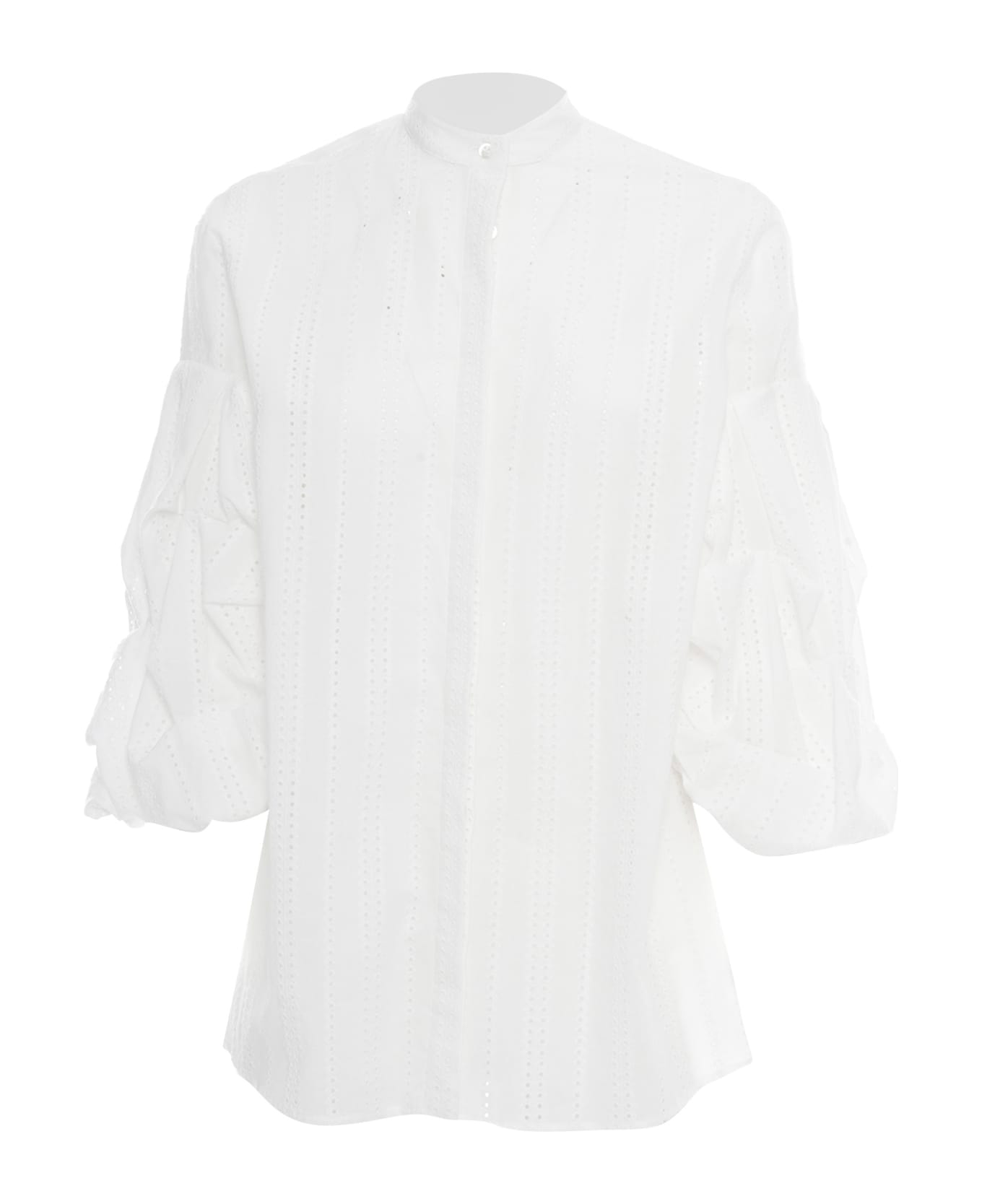 Cotton shirt, mandarin collar, short gathered sleeves