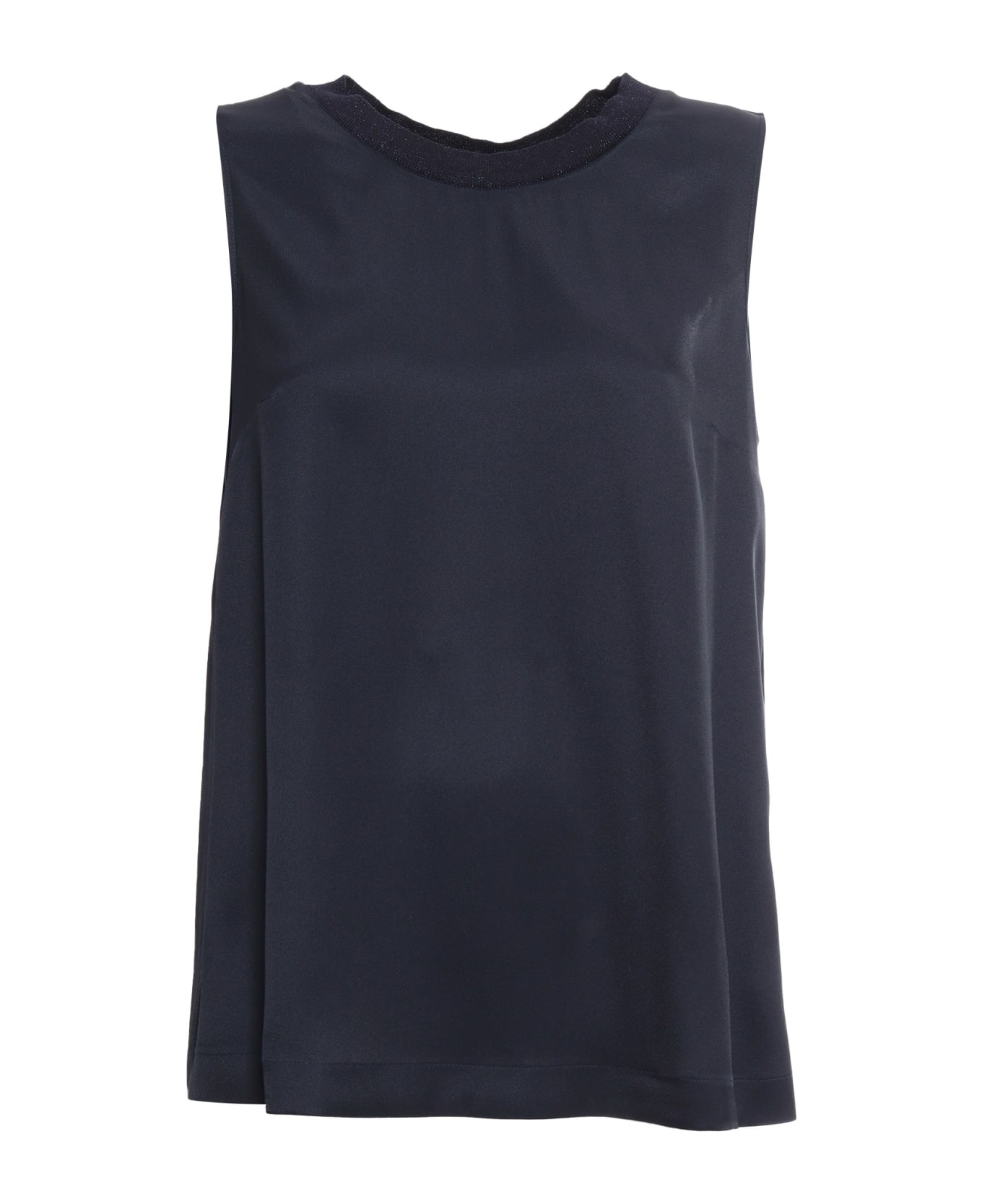 Silk blend top, lurex round neck, flared, logo