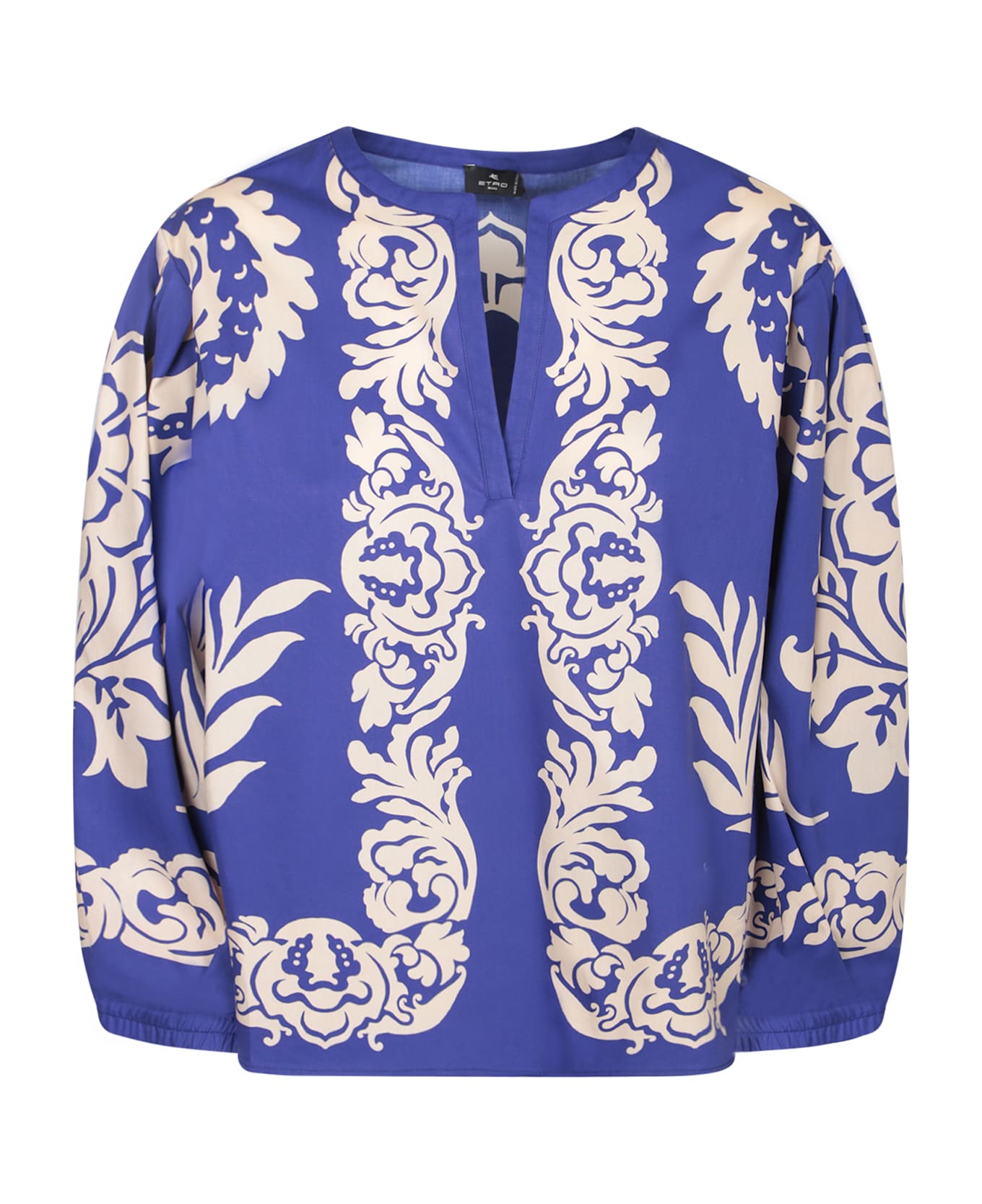 This Etro blouse captures elegance with its vivid blue and white paisley design, perfect for adding a sophisticated touch to your wardrobe. Composition: 100% Cotton