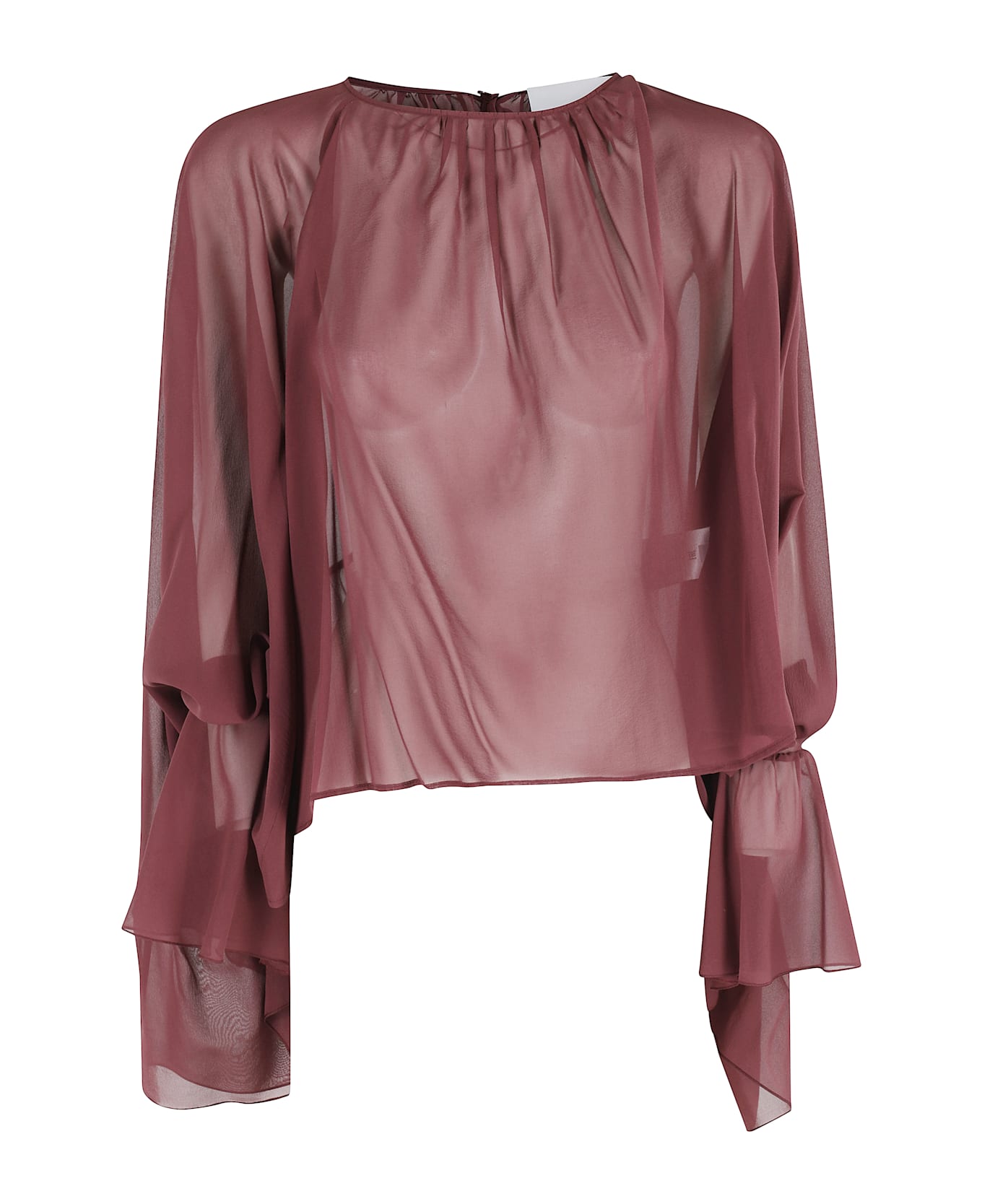 Blouse - Erika Cavallini - Cora model - Eggplant color - Asymmetrical - Back opening - Ruffle at bottom - Back button closure.