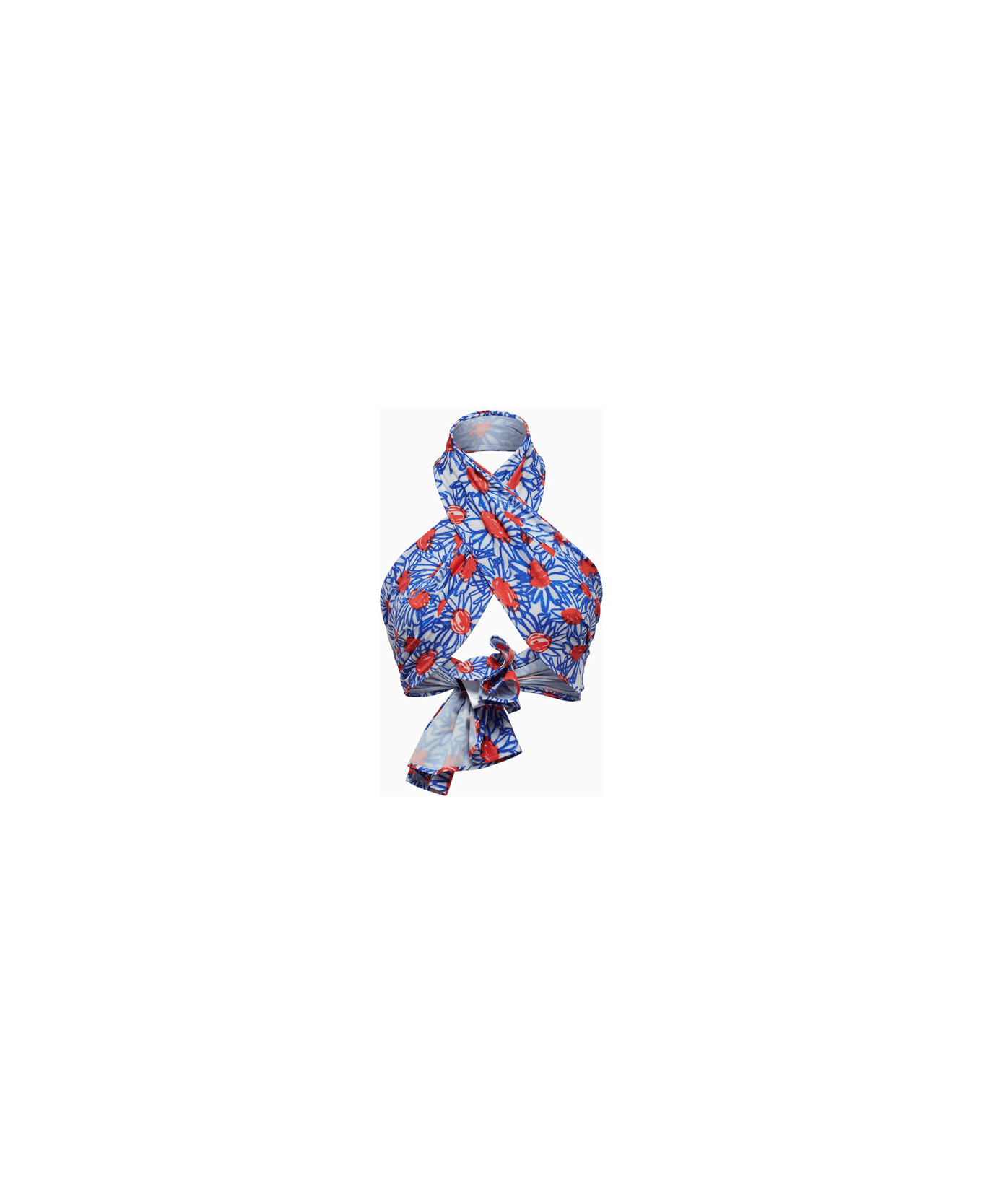 bandeau top in fabric with all-over floral print. slim fit. composition 73% polyamide 27% elastane.