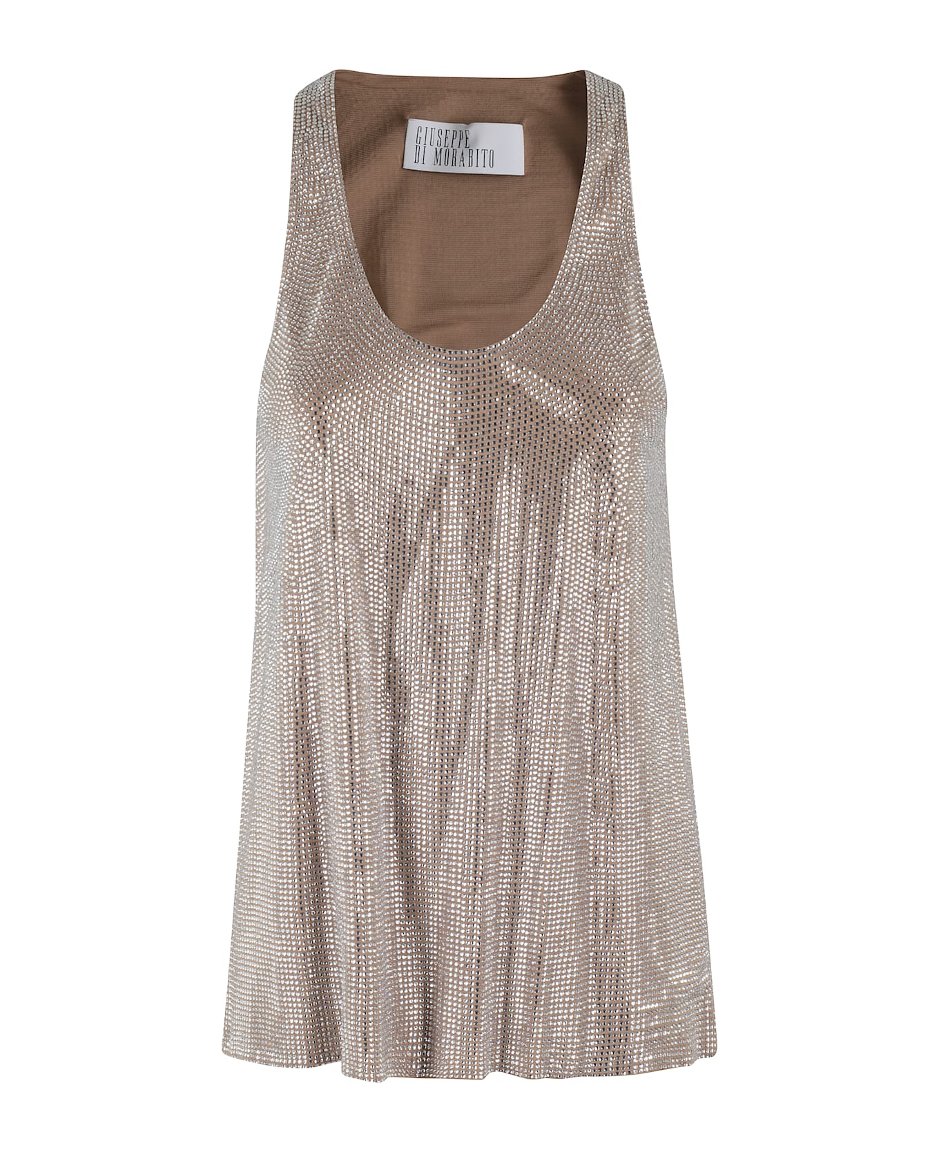 Rhinestone Top Giuseppe Di Morabito Color beige Round Neck Sleeveless