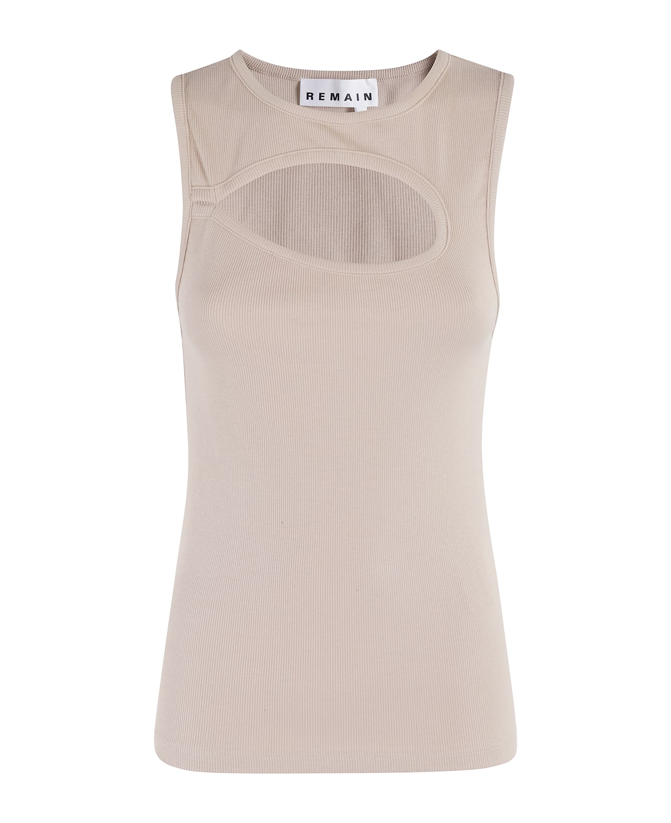 Tank top - Remain - Safari color - Cut out front - Sleeveless - Crewneck