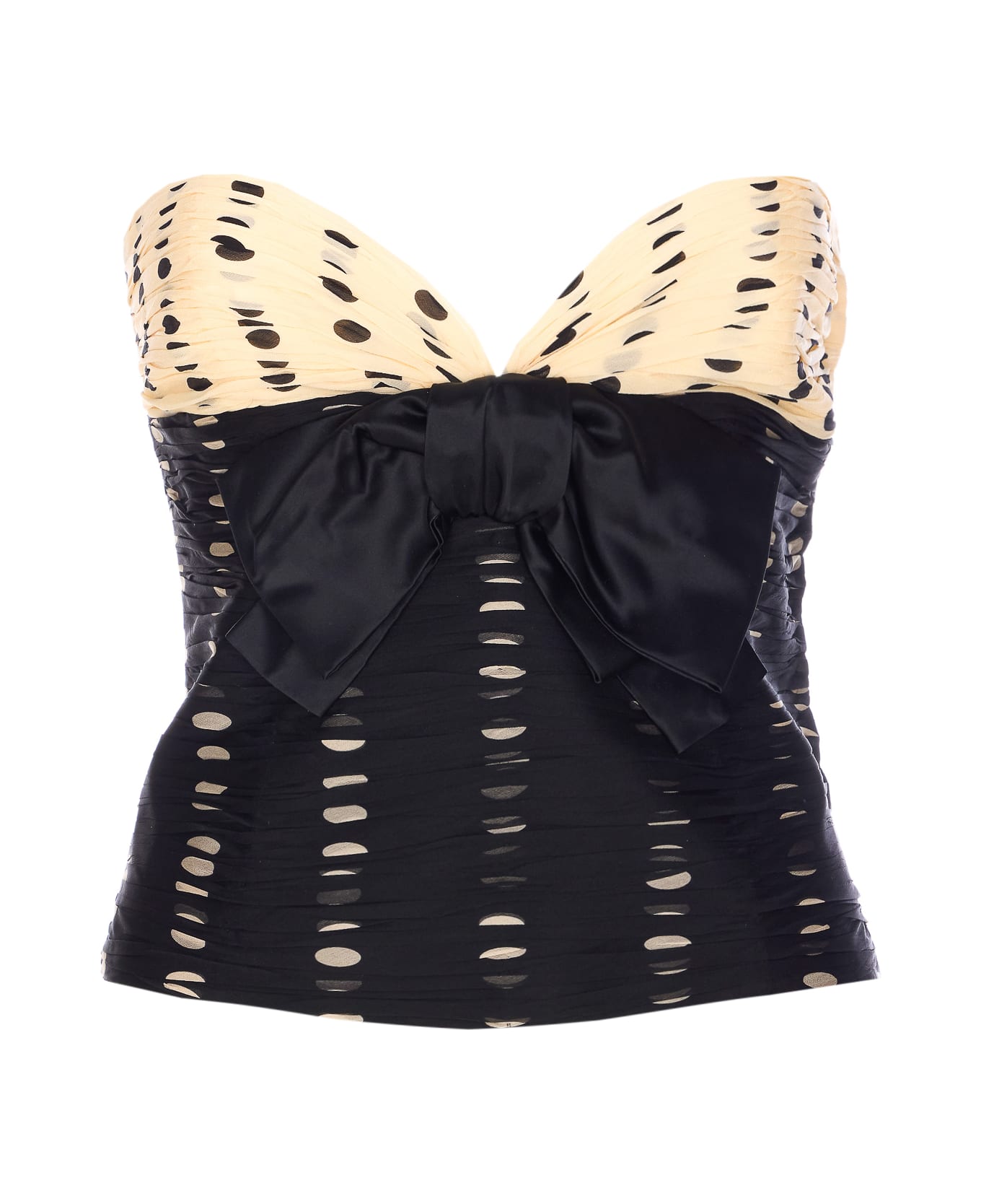 Valentino black and beige pattern top, heart neck, bow detail, lateral and hook zip closure, all over dots print Composition: 100% Silk