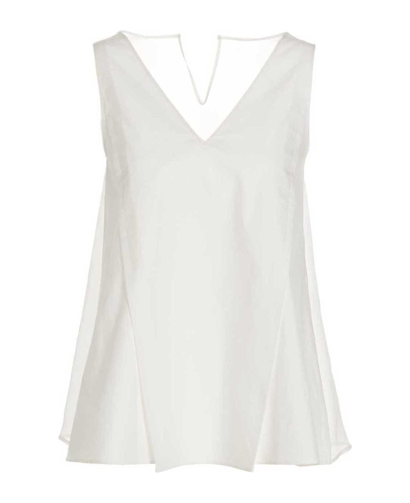 Cotton and silk sleeveless top with a transparent insert, and a V-neck.