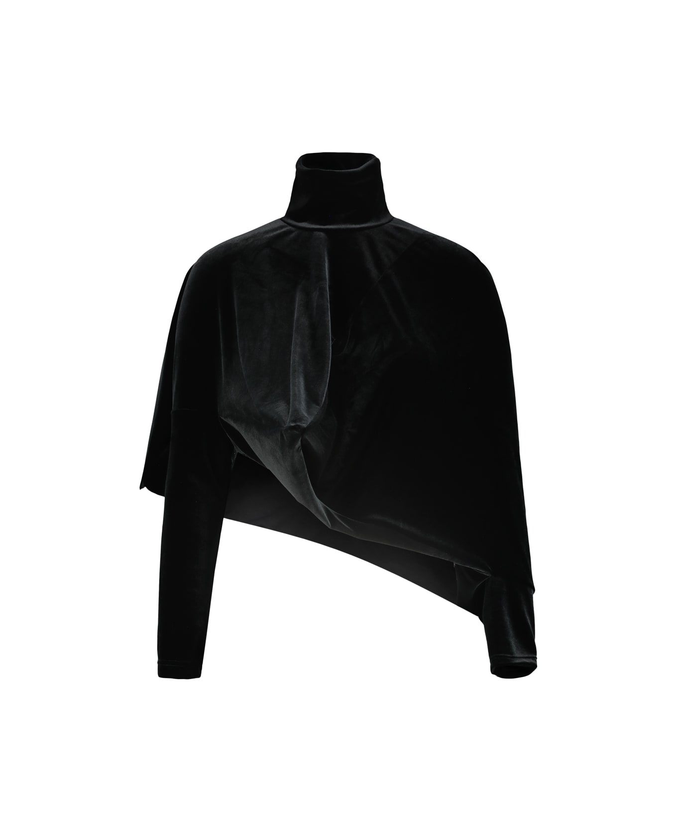 Junya Watanabe cropped stretch velvet top with asymmetrical tip details. GTIN code: JP T009 W25