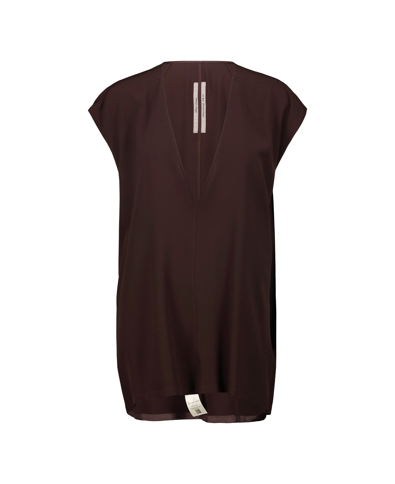 Rick Owens Dylan top in in mixed acetate and silk crepe , deep V-neck, hip length. GTIN code: RP01E7118 CC