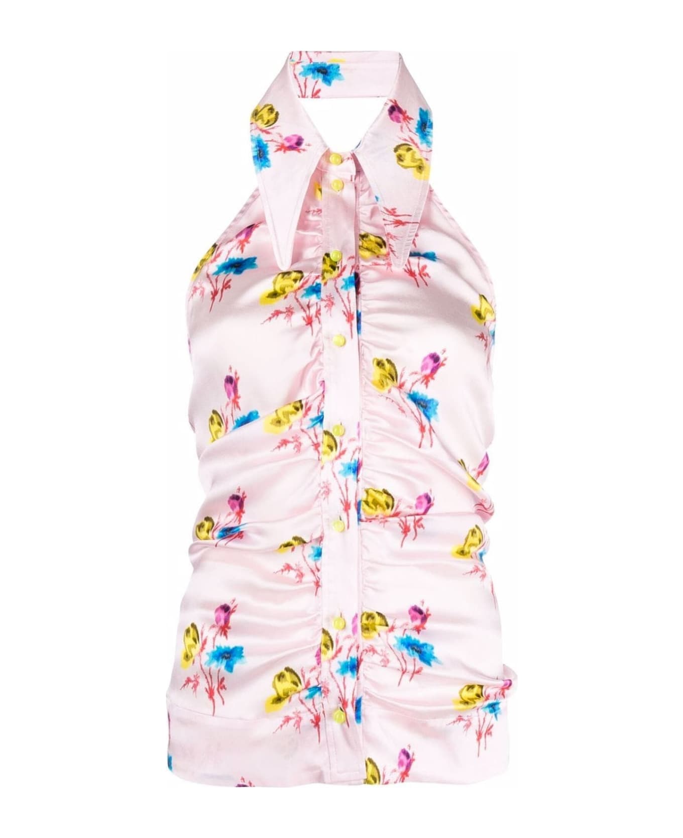 - Composition: 92% silk 8% elastane - Sleeveless - Button closure - Fitted waist and ruches - Dry clean only