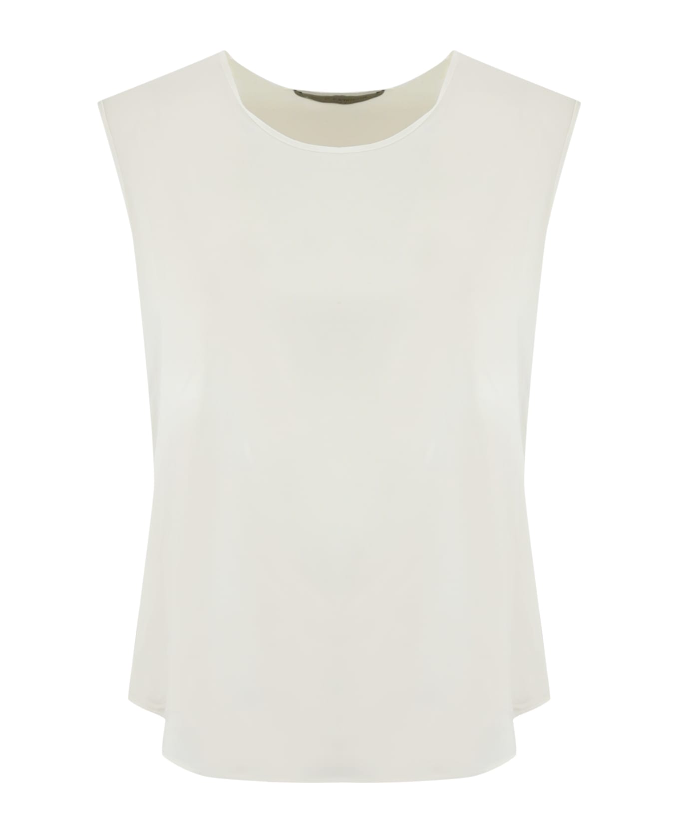 women's tank top: fluid satin sleeveless crew neck curved hem regular fit composition: 97% polyester, 3% elastane