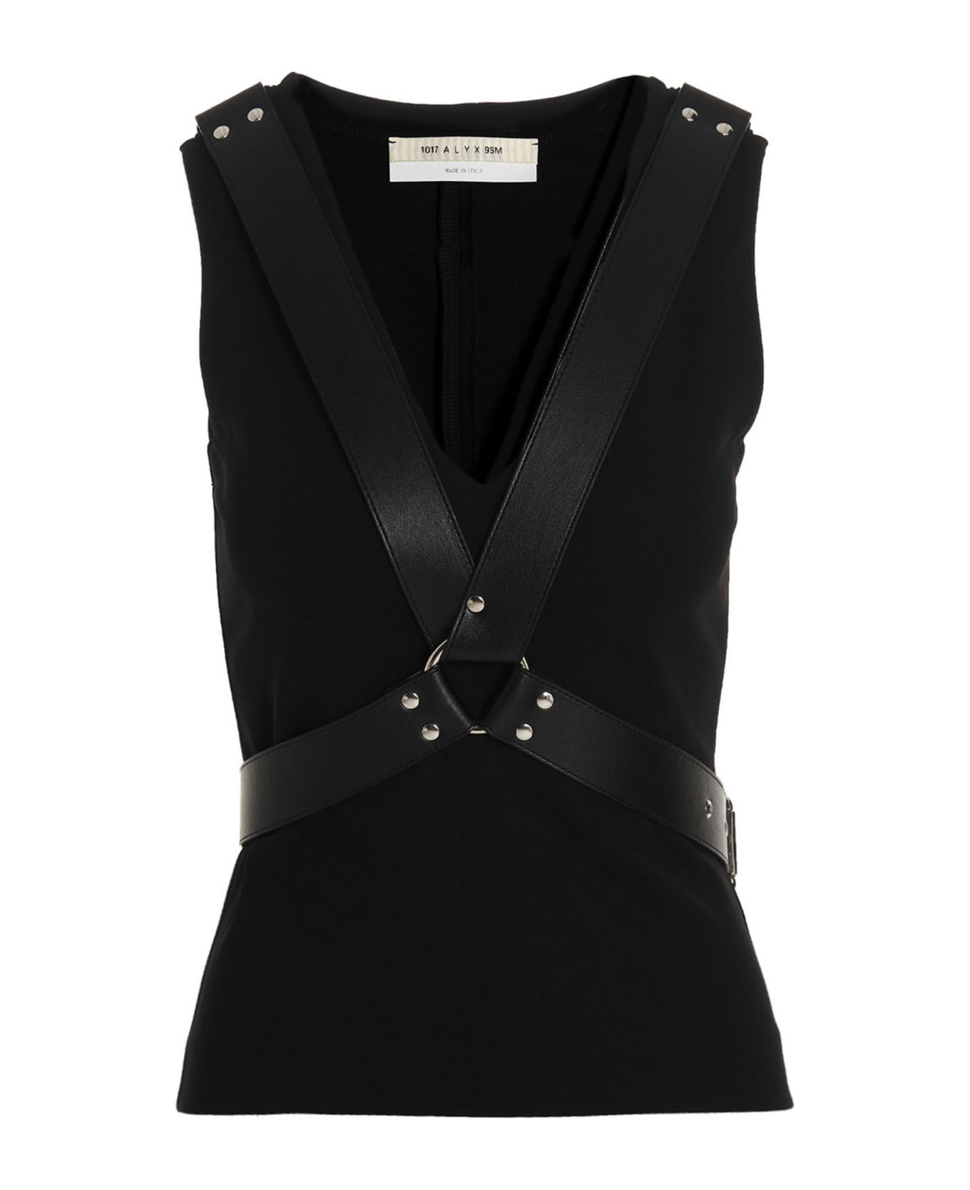 Harness' viscose and viscose blend top with leather harness. s.