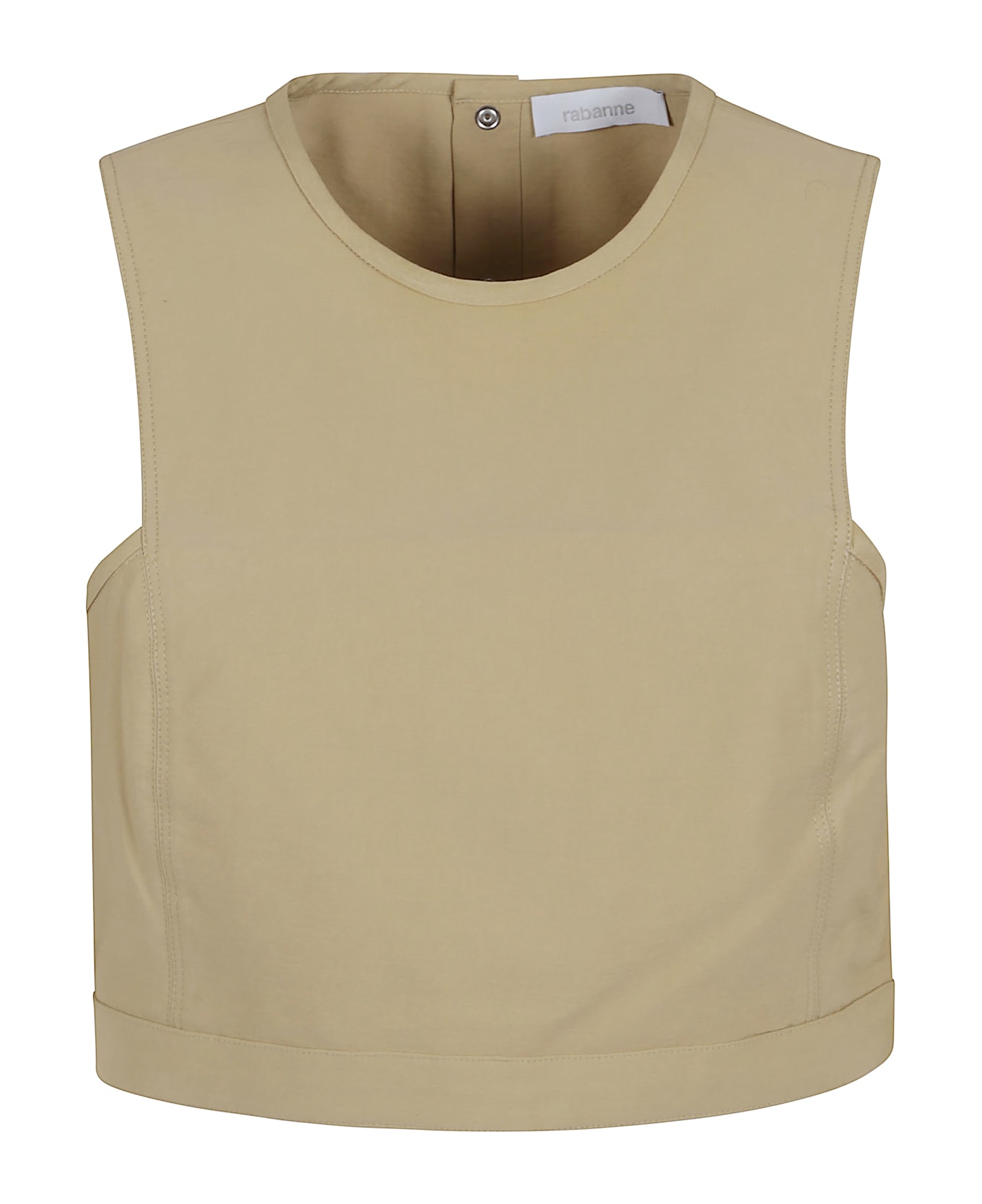 Viscose twill top by PACO RABANNE. Snap button fastening at the back; crew neck; sleeveless. Cropped design. Features a bow at the back.