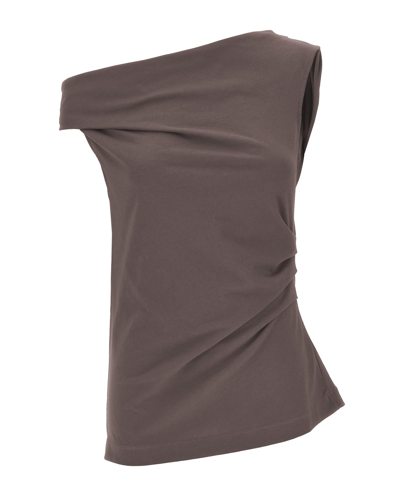 'Henray' cotton jersey top with draping and pleats at the waist, off-the-shoulder model, boat neck.