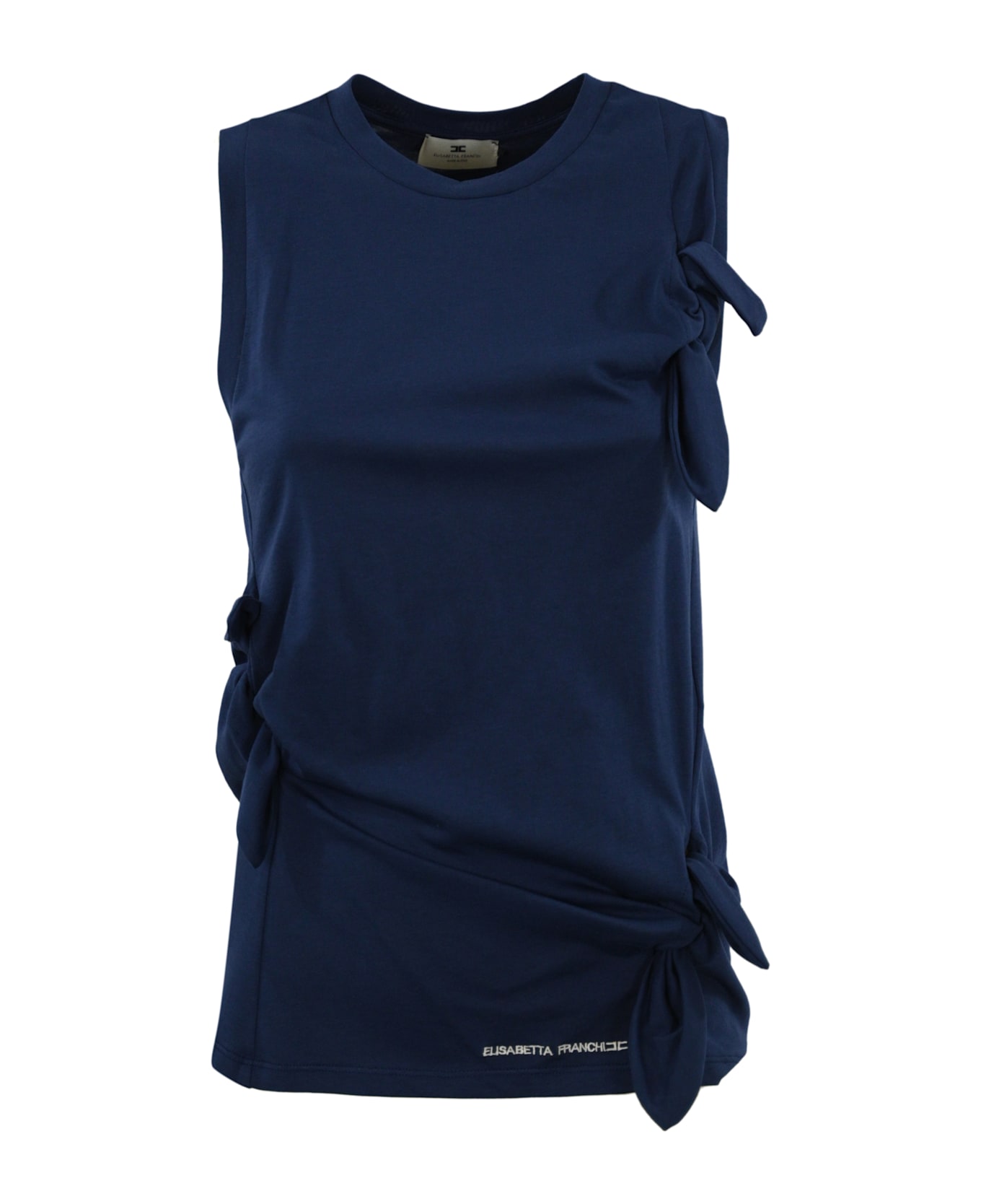 women's cotton top: cotton jersey sleeveless crew neck details with bows tied on the front moulage effect logo embroidery at the bottom regular fit composition: 100% cotton