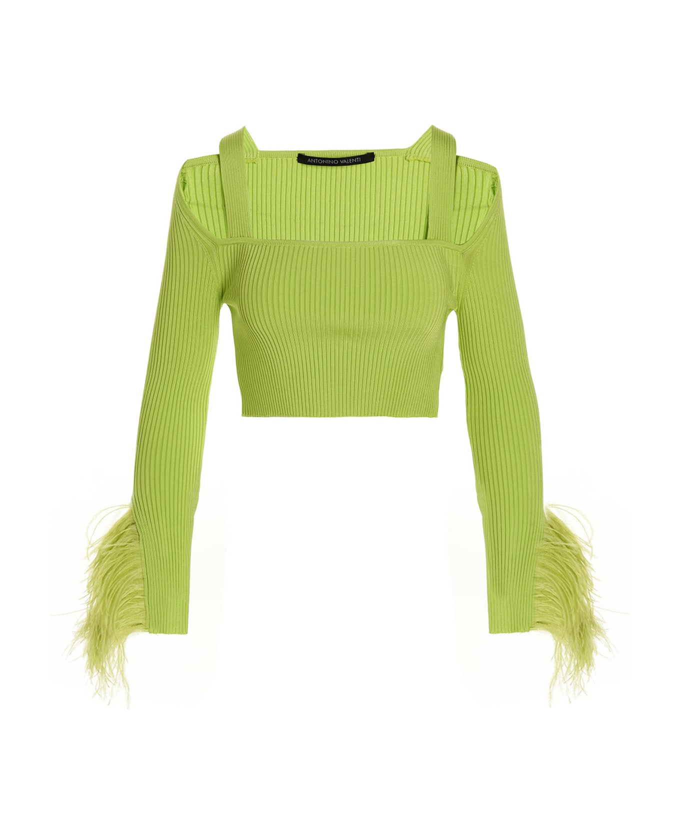 Judith' ribbed top with square neckline, thick shoulder straps and feather sleeves.