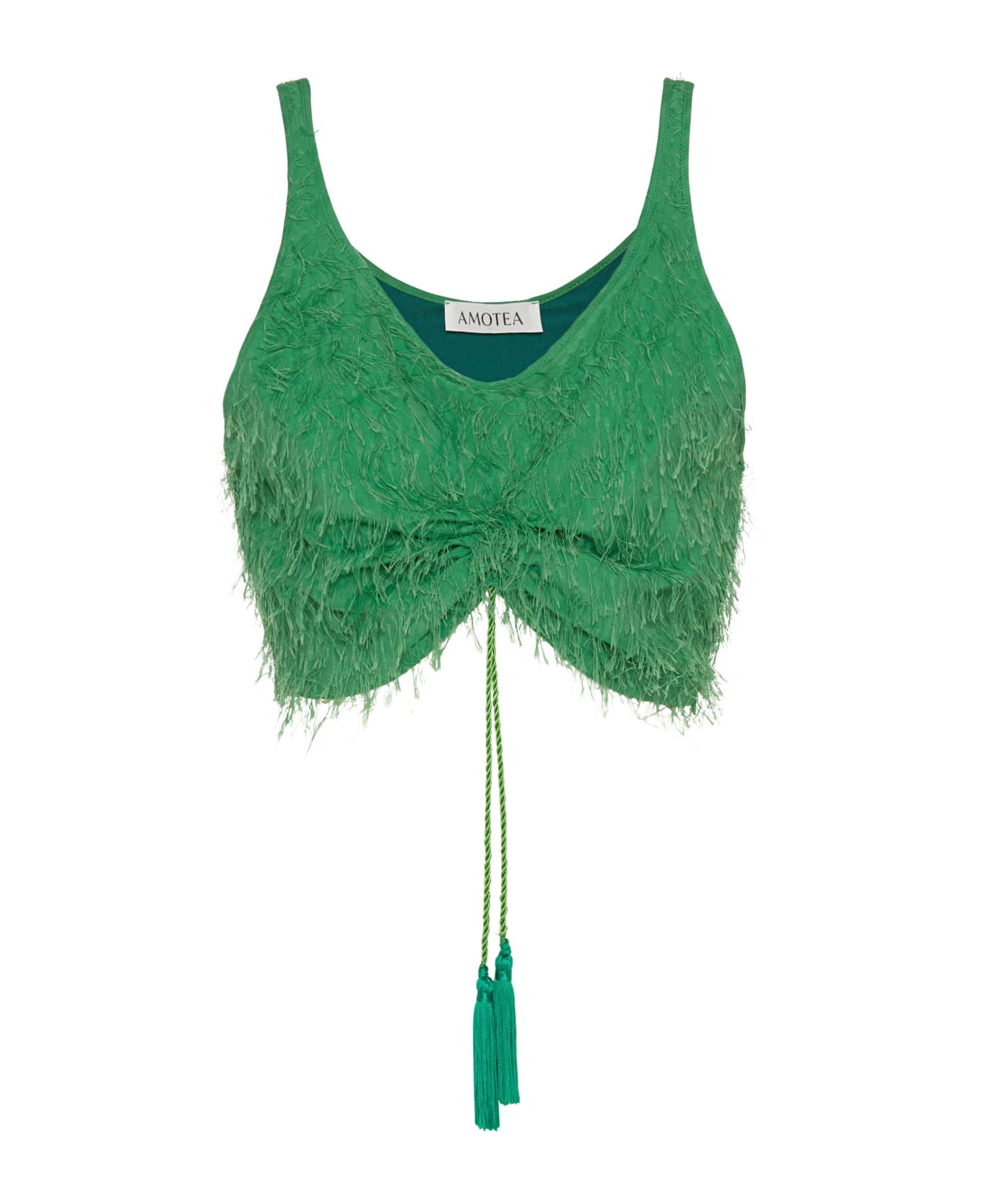 Soft Sophistication And Vibrant Brightness. The Kate Draped Crop Top In Green Fil Coup ith A Fringed Effect Features A Playful Cut That Leaves The Stomach Naked, A Subtle Nod To The Most Iconic 70S Inspirations. A Perfect Ensemble With The Carol Flared Wide Trousers And The Baby Mini Skirt In Green Fil Coup br>Composition:72% Acrylic, 28% Viscose