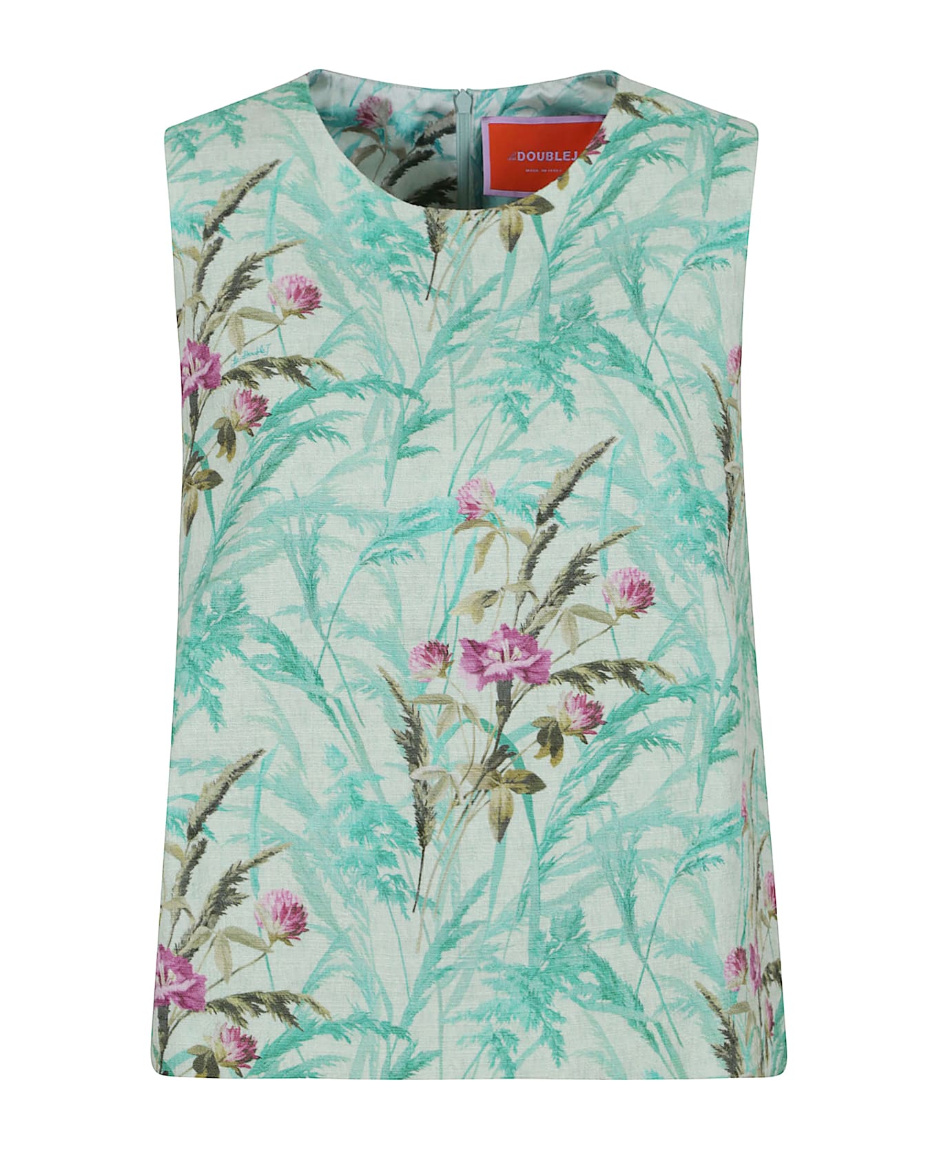 Cotton melange top by LA DOUBLEJ. Crew neck; sleeveless; concealed zip fastening at the back. Featuring LDJ patterns.