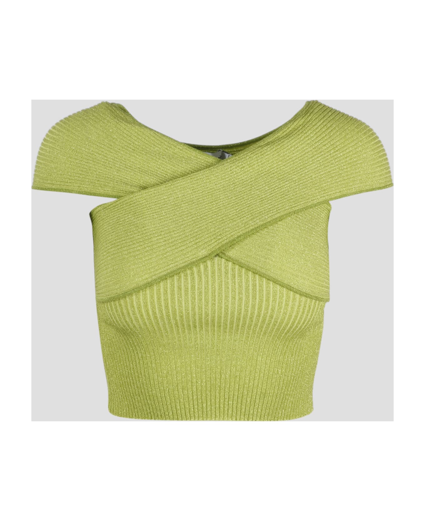Self Portrait lurex knit off shoulder top. - SS23 - Slim fit - Cross-over bodice - Made in China - 40%Viscose 26%Polyester 24%Polyamide 10%Metallised Fiber