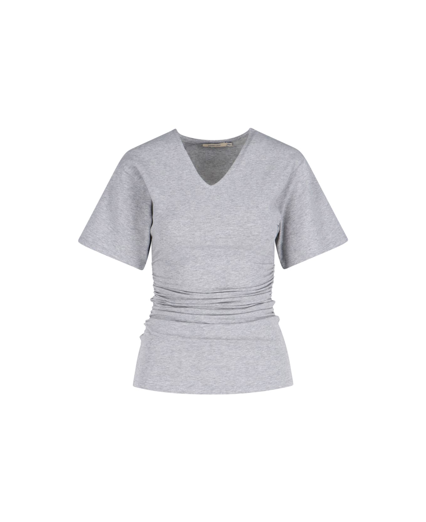 Paloma Wool Mes V-neck top in gray organic cotton with short sleeves, and straight hem.