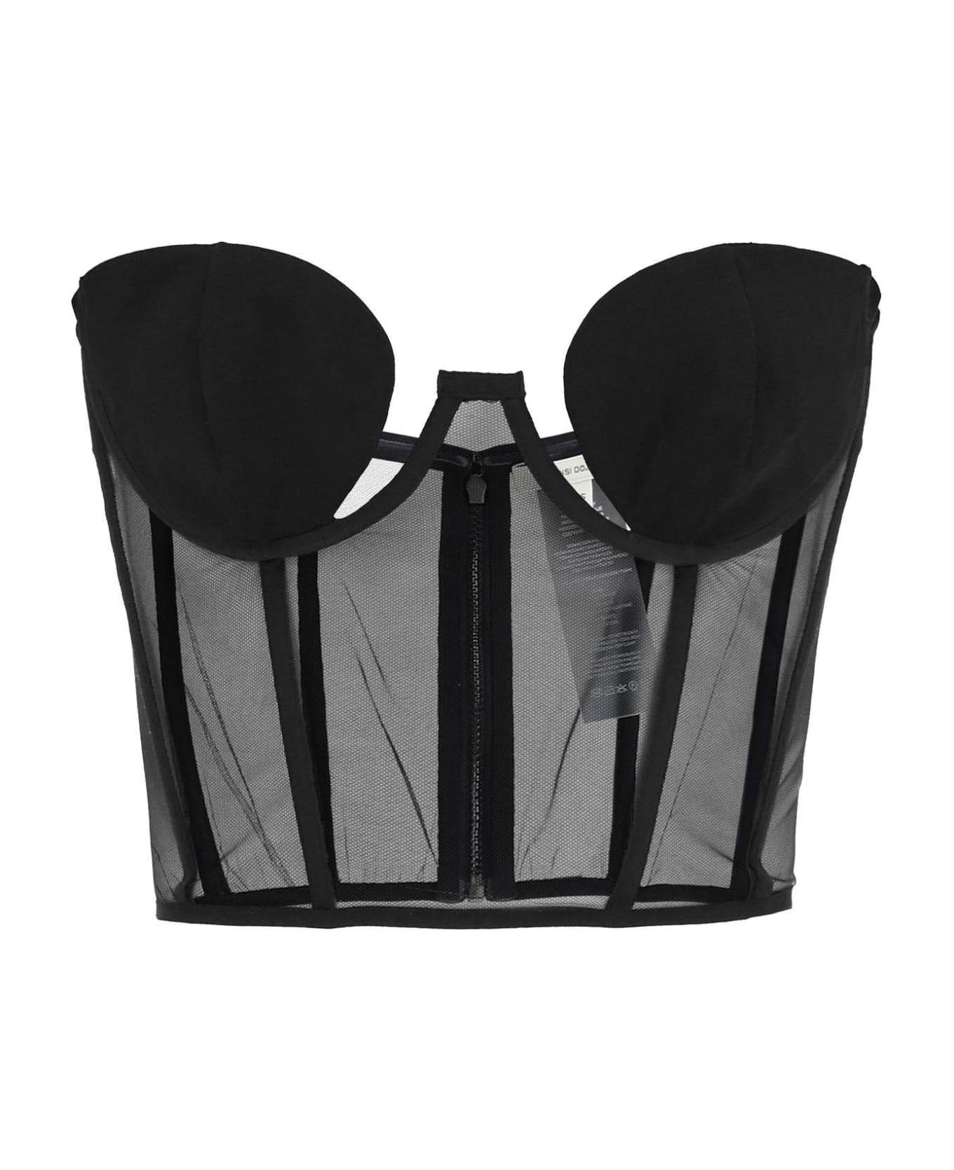 Cropped bustier top by Nensi Dojaka, crafted in boned tulle with moulded viscose cups, enhanced by cut-out detailing. Back zip closure. The model is 177 cm tall and wears a size XS.