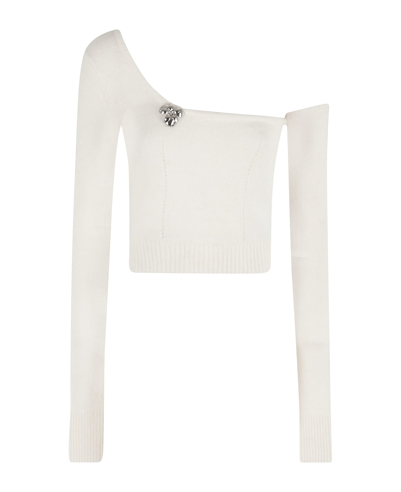 Top -Blumarine -White pearl color -One-shoulder -Removable sleeve with button -Floral applique