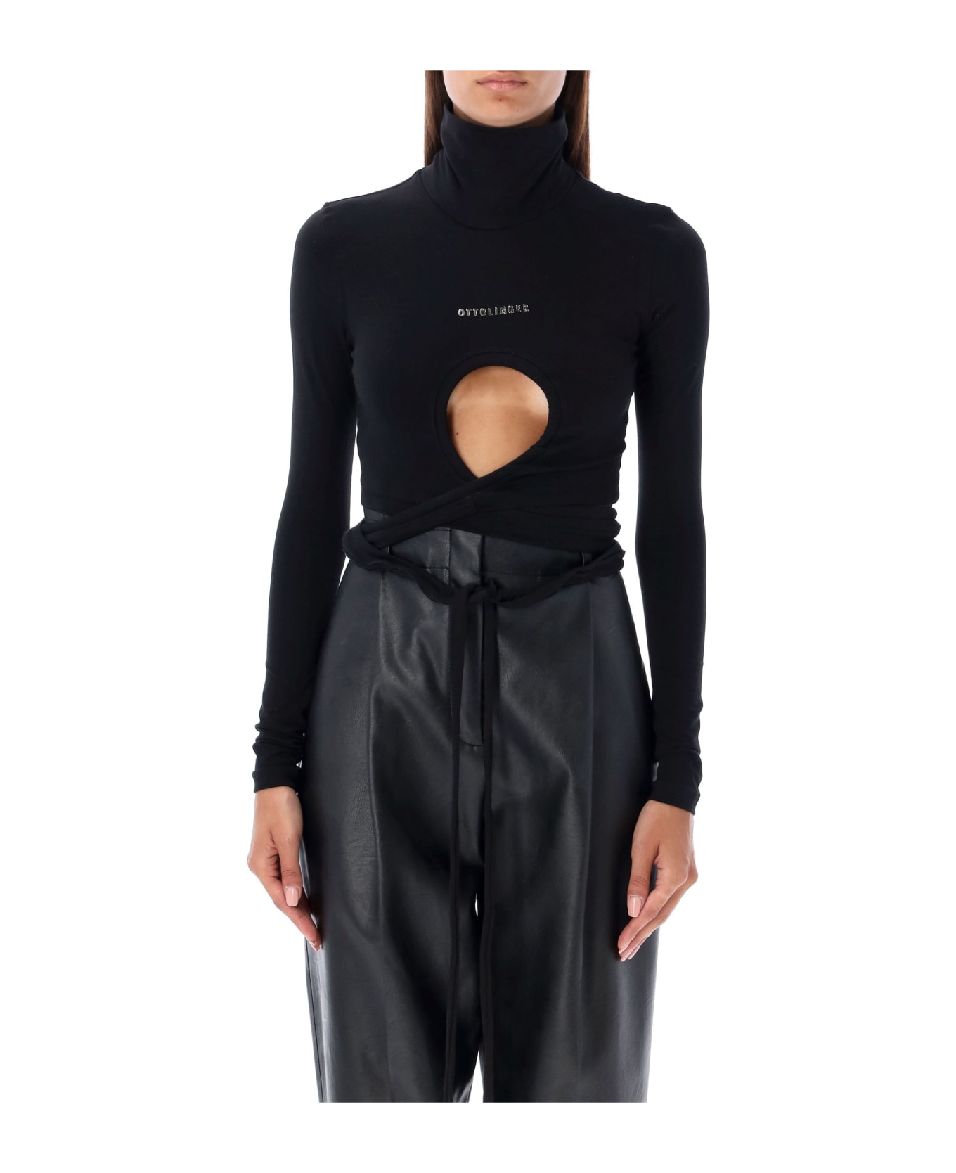 Otto Wrap Top By Ottolinger. Featuring: High Neck Long Sleeves Topstitching Details Ottolinger Embroidered Logo Criss-crossed Laces In Front Cut-out Detail Model Is 1,72 M Tall And He Is Wearing Size S