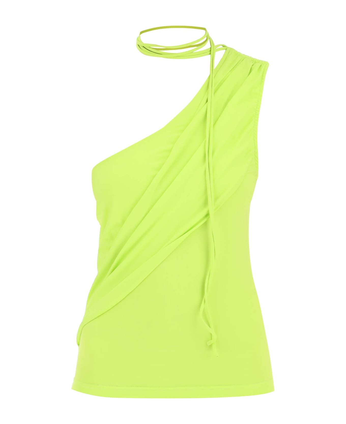 Saks Potts one-shoulder top in jersey stretch, enriched by a draped front panel and by shoulder ties to wrap around the neck. Made with recycled fibers. The model is 177 cm tall and wears a size S.
