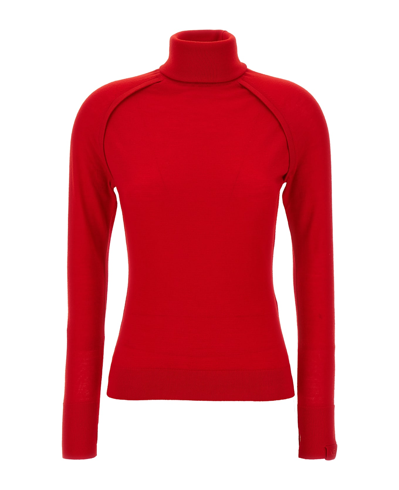 Wool sweater, high neck, 'Piping' detail, long sleeves with logo embroidery on the cuffs.