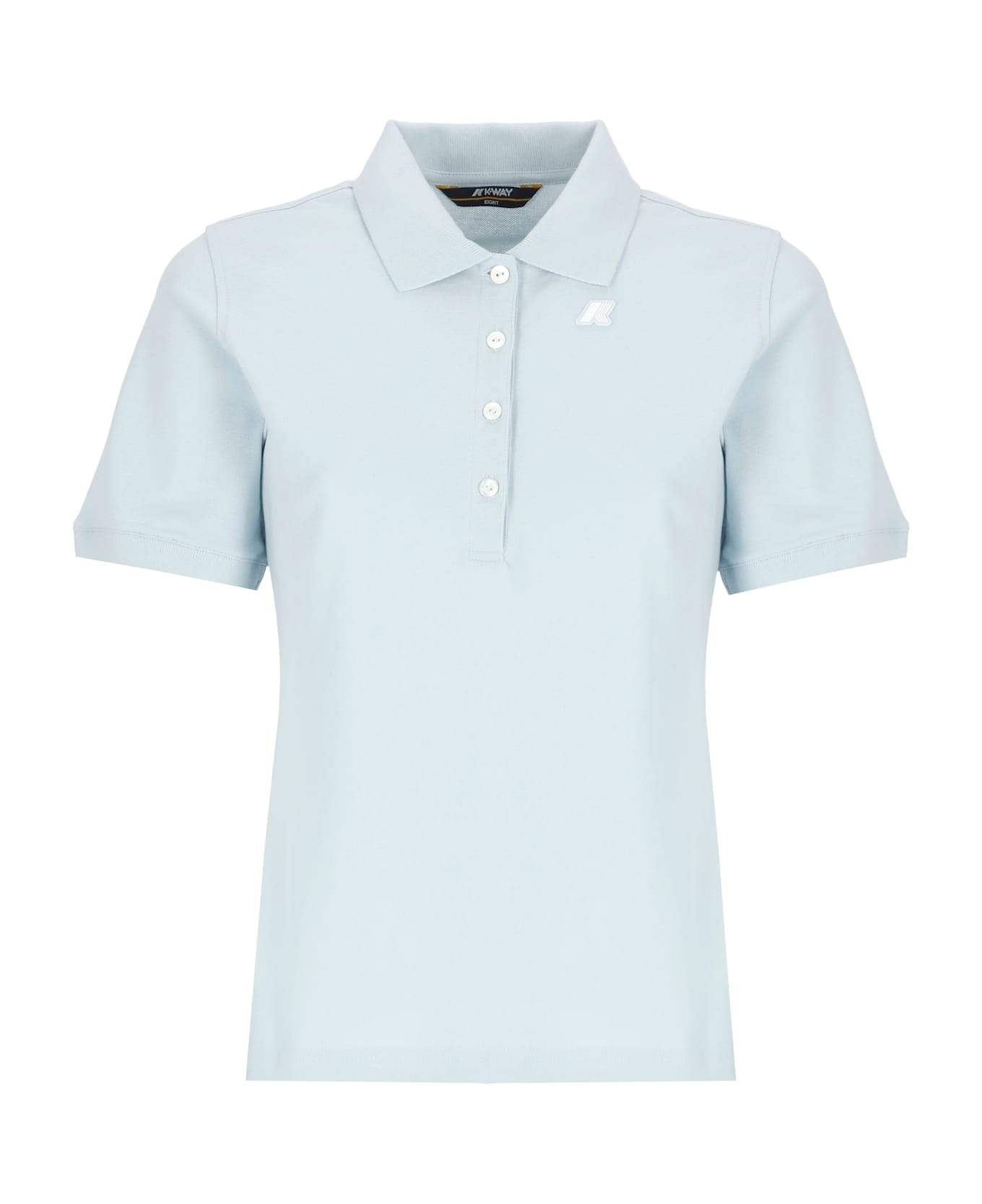 - Light blue K-Way three-buttons polo shirt for woman - Collar - Short sleeves - Front contrasting color logo