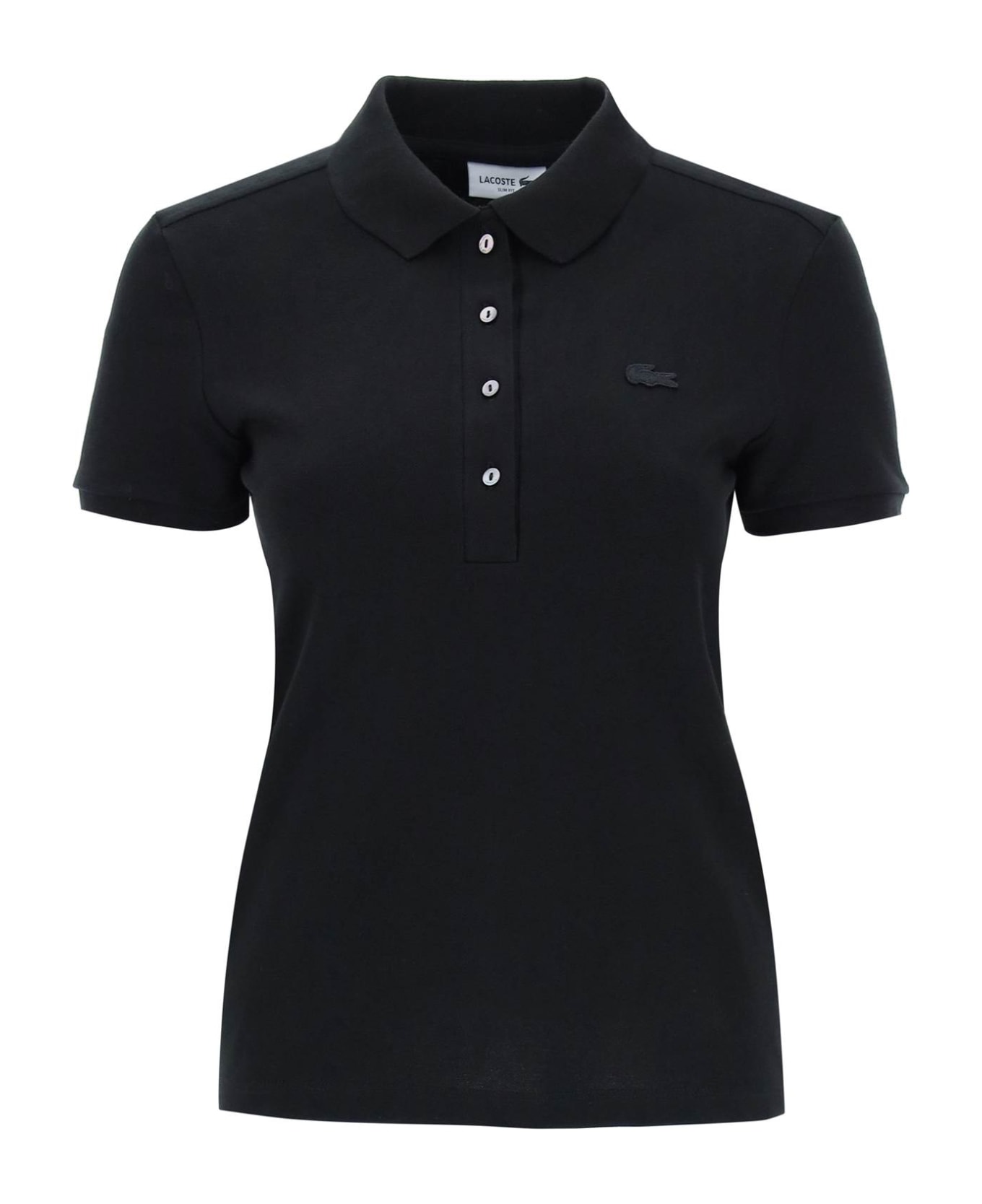 Lacoste cotton piquet polo shirt with collar, front fastening with buttons, regular fit and iconic tone-on-tone patch applied on the chest. The model is 177 cm tall and wears size FR 36.