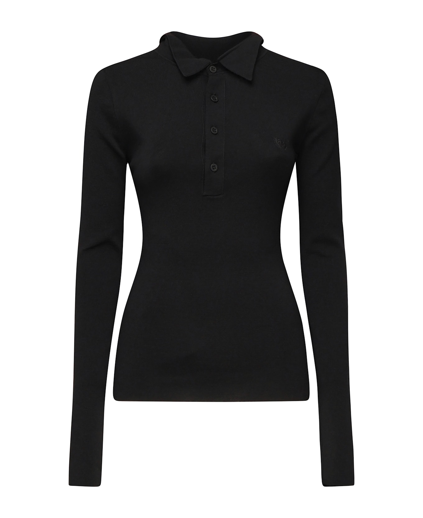 -Tight-fitting polo shirt with long sleeves, long on the hips -Straight cut -Stretch fabric -The size shown in the photo is XS -Color: Black