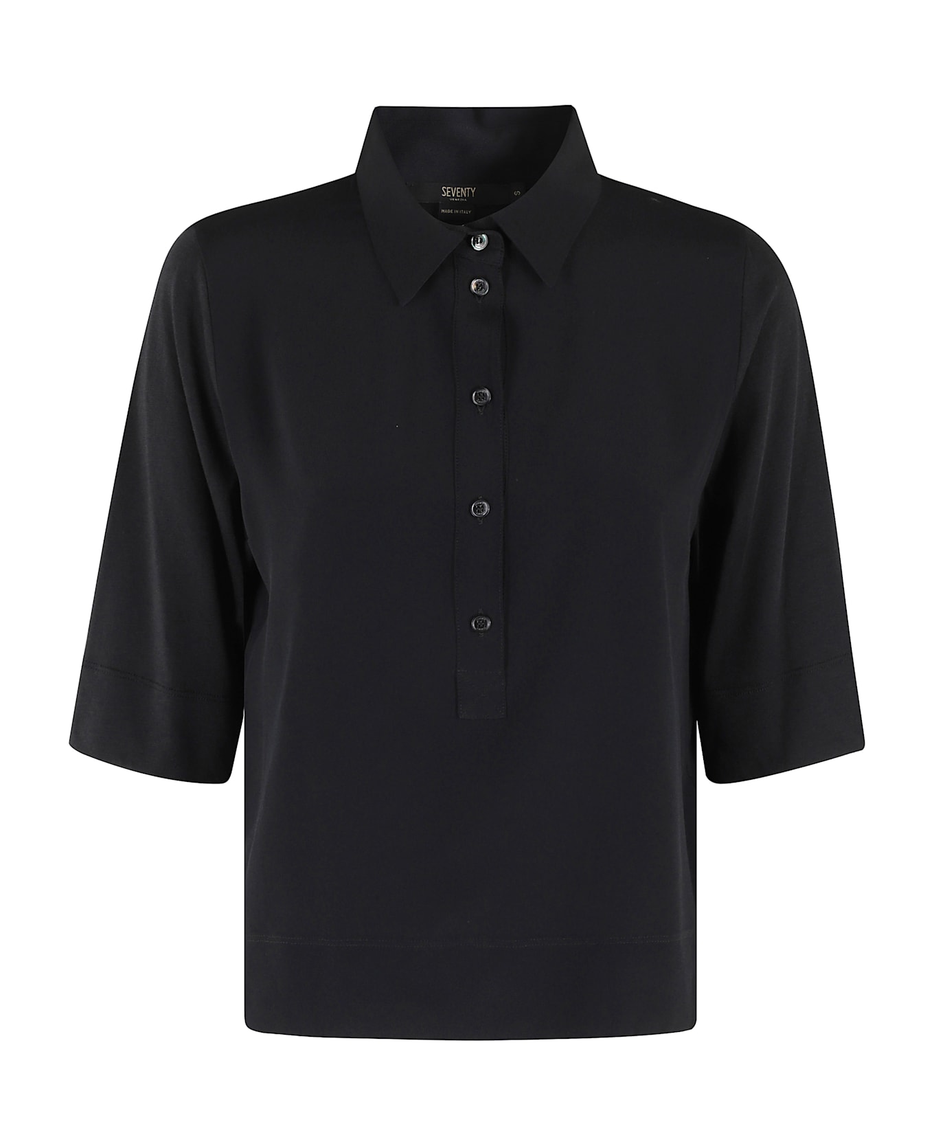Seventy Color black polo shirt Three-quarter sleeve Classic collar Button closure