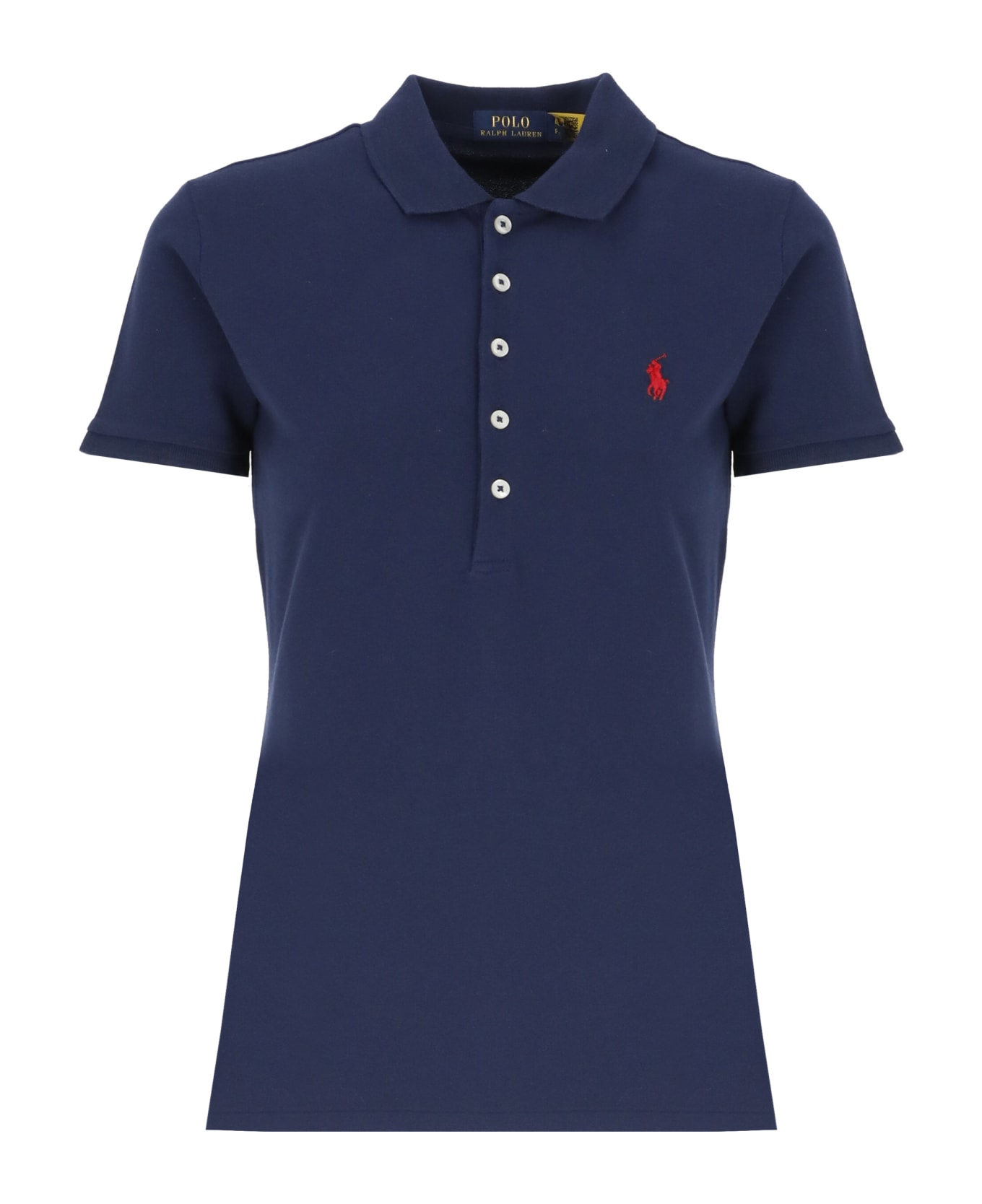 Pony Polo Shirt from Ralph Lauren: - Ralph Lauren cotton polo for woman - Collar - Front buttons fastening - Short sleeves - Iconic embroidered Pony at chest - Two side vent at hem - Asyemmetric hem