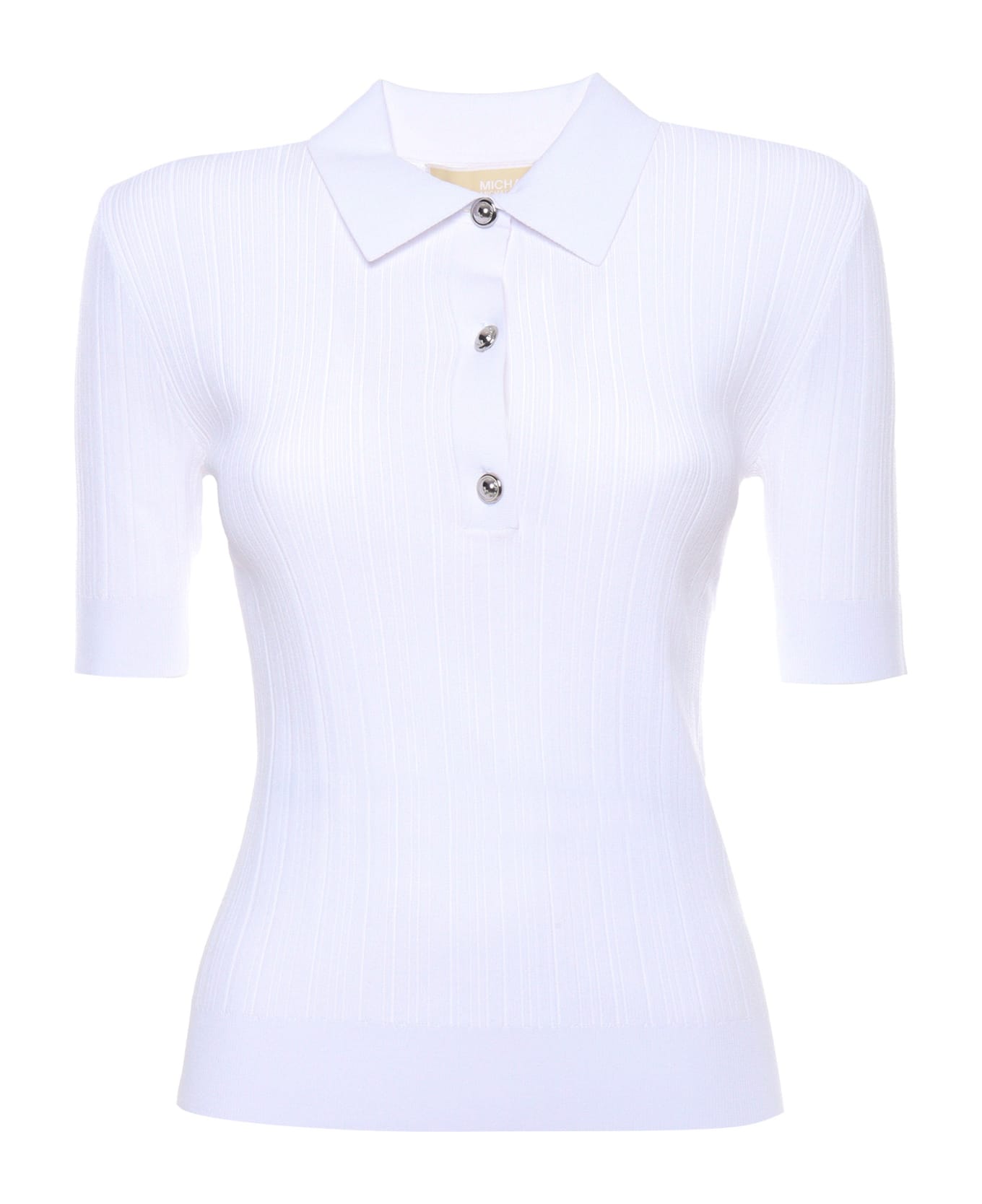 Recycled viscose polo shirt, silver-finish logo buttons, short sleeves