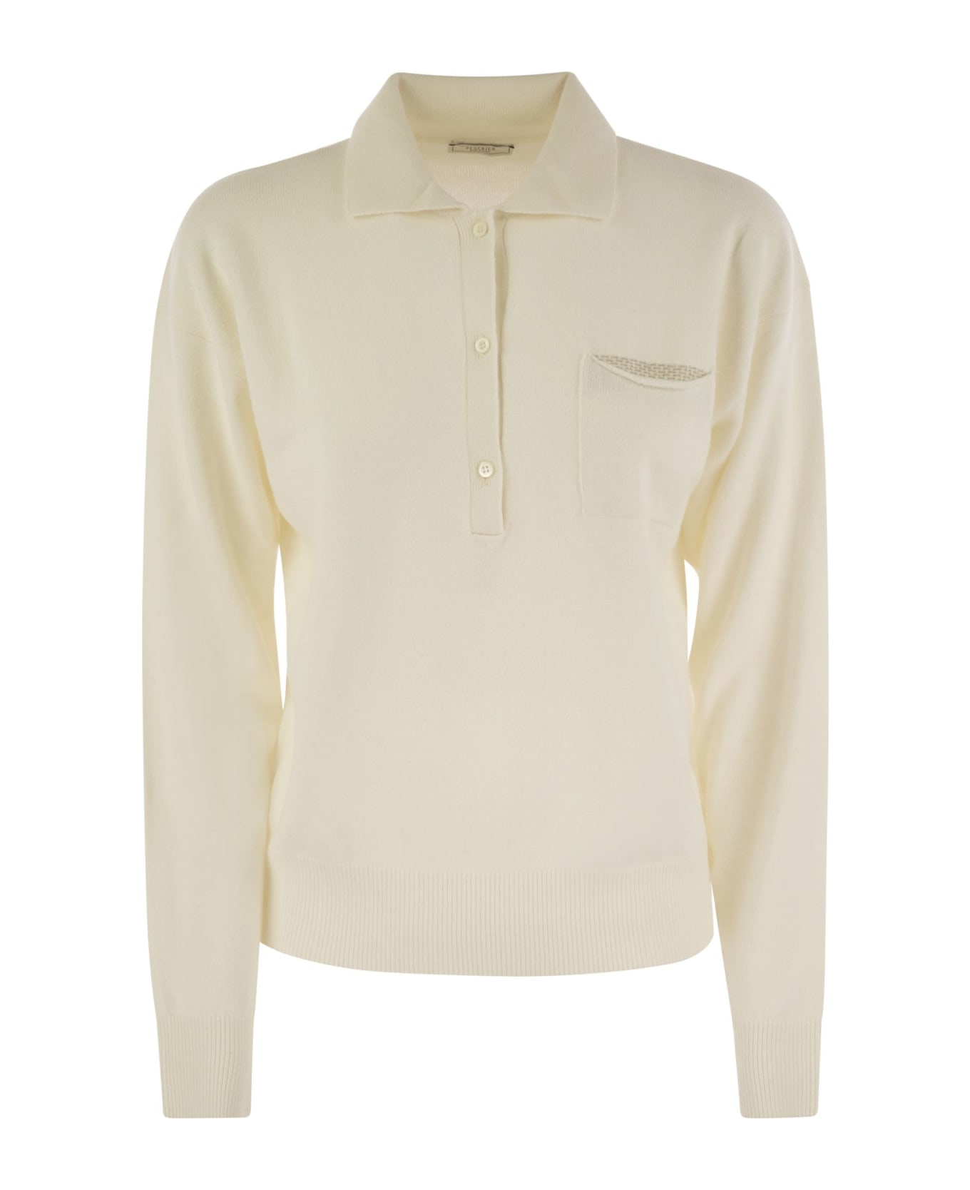 The timeless elegance of the virgin wool, silk and cashmere tricot knit is characterized by a refined polo collar. A patch pocket on the chest, embellished with a Punto Luce detail, adds a bright touch to the design. The regular fit lends a graceful note. - Polo neck - Long sleeves - Patch pocket on chest with spotlight detail - Regular fit - Three-button closure DESIGNER ID: A99530F12B9018 B03